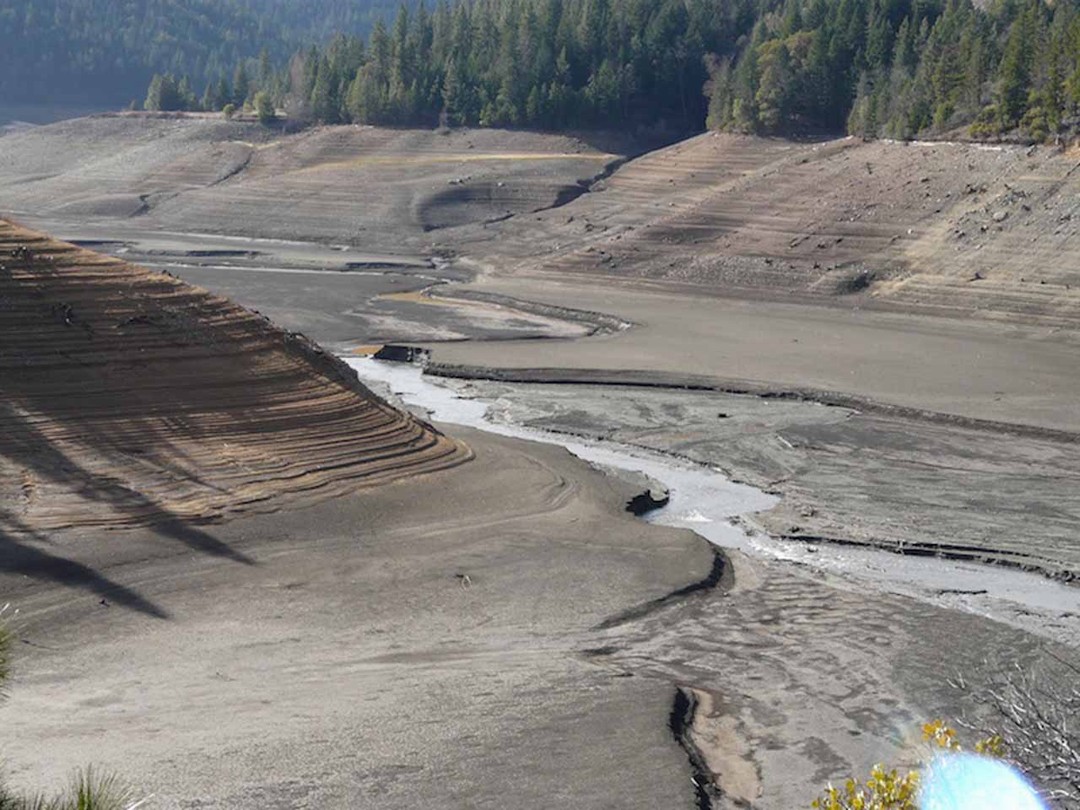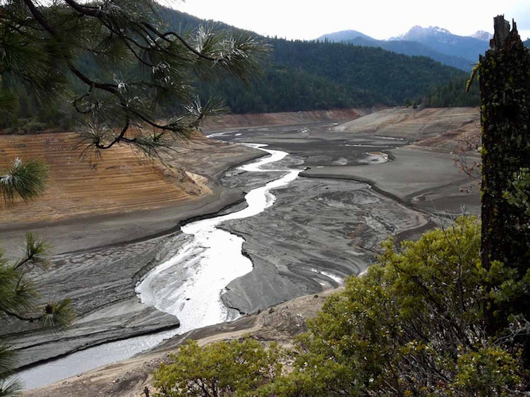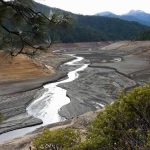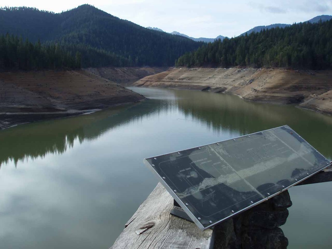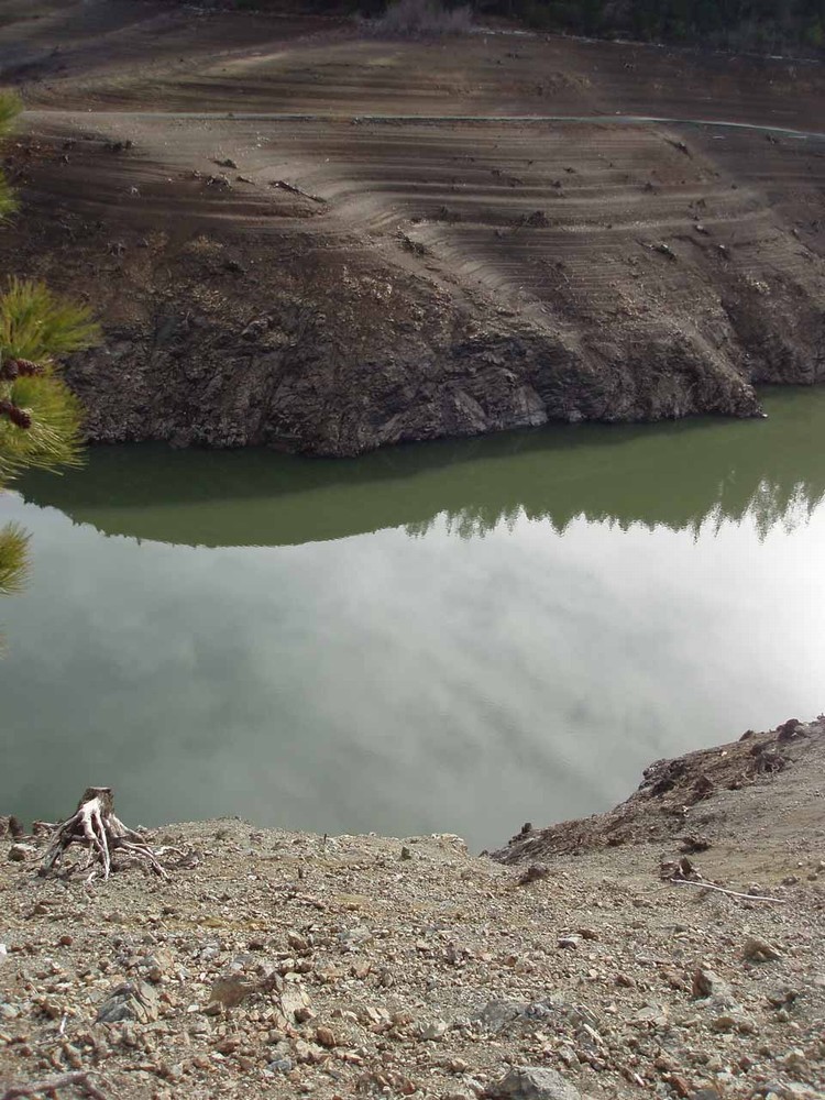 Weather at the former Applegate Lake ranged from sunny to cloudy. There was a remnant of the lake near the dam, but as we went farther upstream the lake bottom was exposed with the Applegate River meandering thru it. We stopped about 100 yards short of the Copper boat ramp and didn’t think of walking to it to look for remnants of the submerged town of Copper.