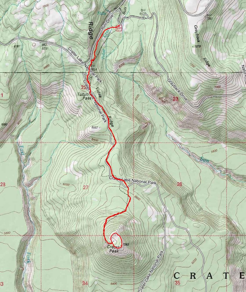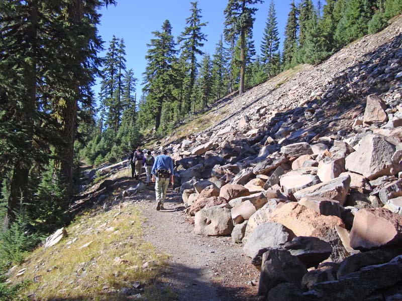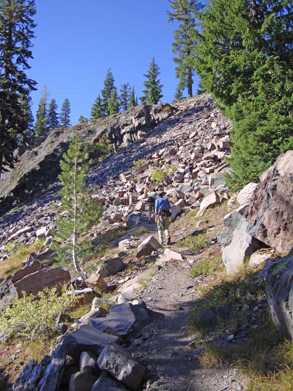 The later arriving group planned to summit Garfield Peak after completing the Crater Peak hike. The two earlier arriving cars thought that this was crazy talk and retired to the terrace of the Crater Lake Lodge for refreshment.