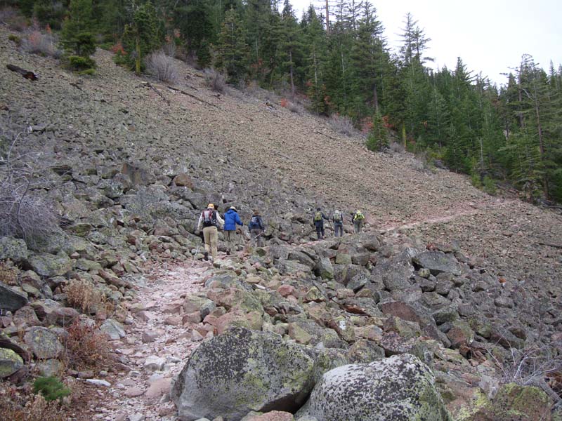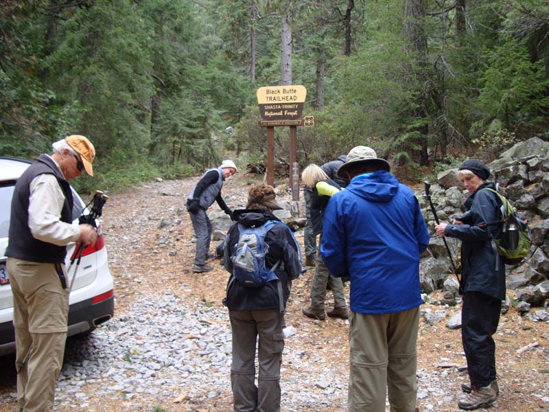 We had rain on the drive down but it cleared up by the time we were passing Weed. The road in from Everitt Memorial Highway is in fair shape, although it is still a good idea to use high clearance vehicles. During the day it warmed up from the high 40s into the low 60s under partly cloudy skys interspersed with sun breaks. Neither rain nor fog today for a pleasant change.