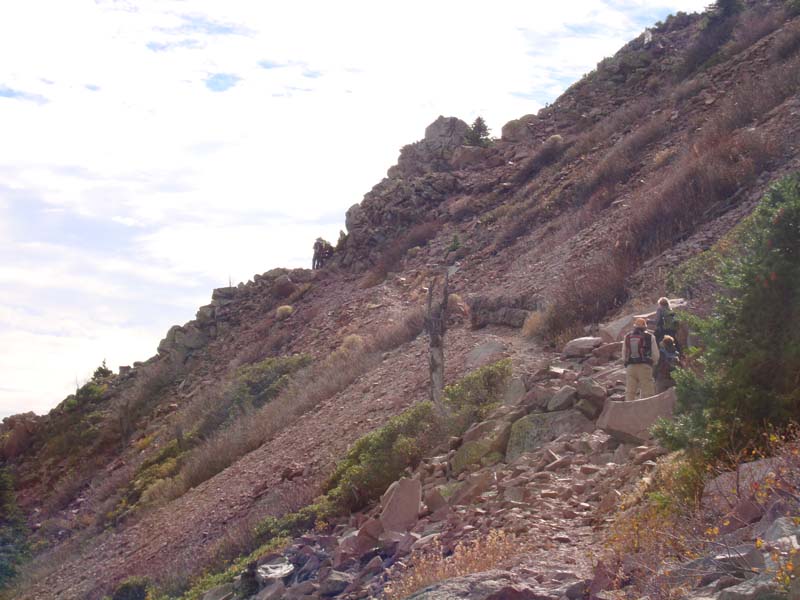 We were at the TH at 10:45 and on top by 12:45. The trail is in better condition than when we were last here in 2012. The 2 or 3 spots where the trail had been taken out by rock slides have been rebuilt.