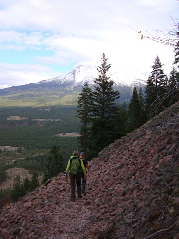 FYI, the rocks in wire cages that are used to help retain the trail are called gabions. The name comes from the Italian “gabionnes” which means big cage.