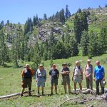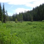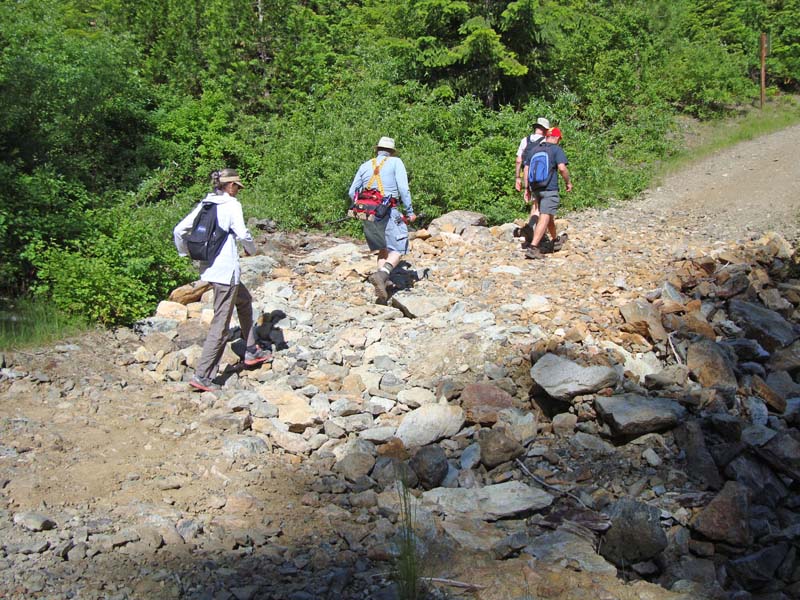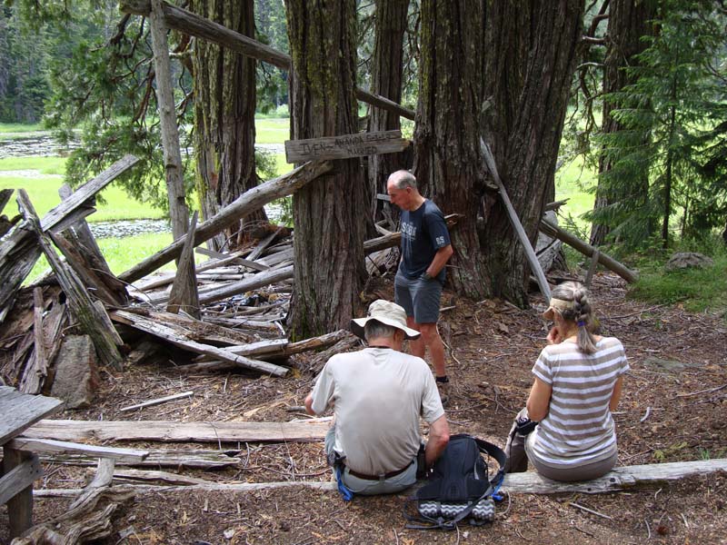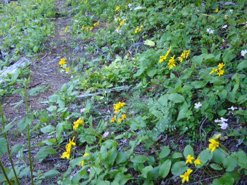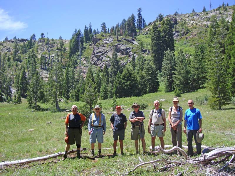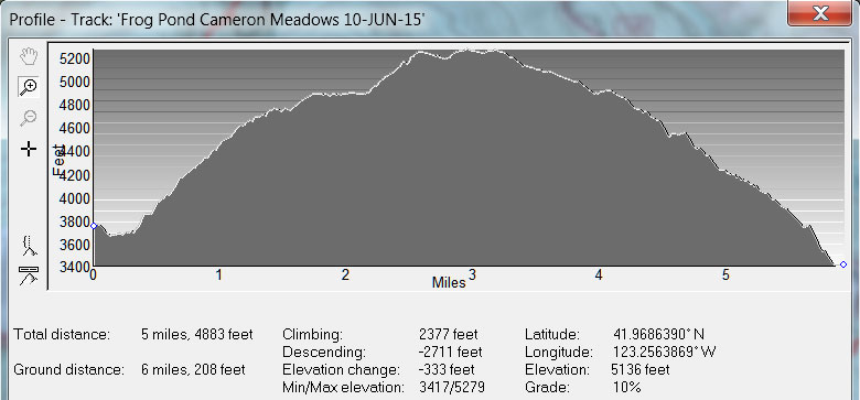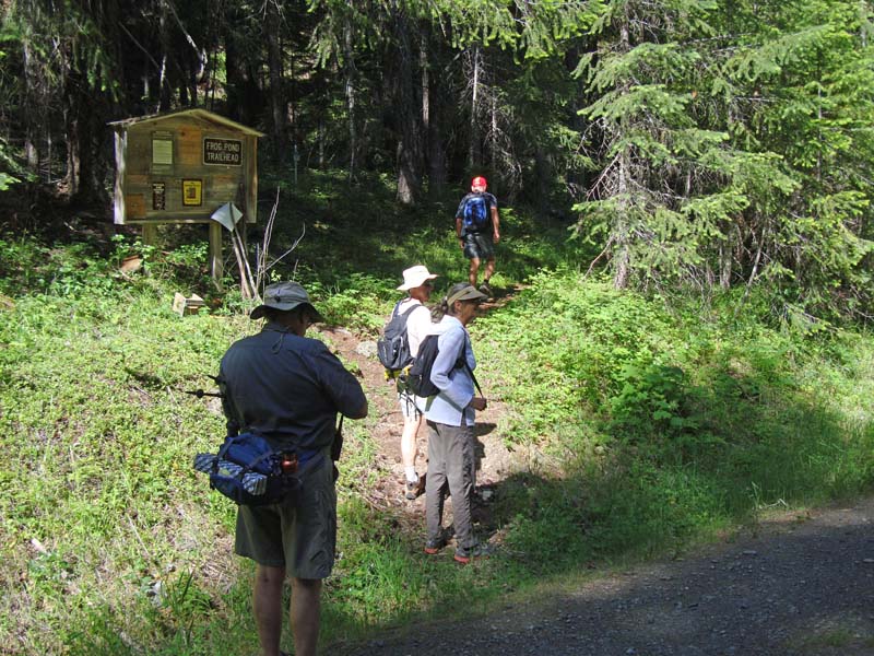 We dropped a car at the Cameron Meadows TH on the way in and stopped just short of the Frog Pond Gulch ford because it is still washed out. After crossing the ford on foot we headed up the Frog Pond trail which is still as steep as ever. We were missing our usual cooling rain/snow mix as we sweated our way uphill.