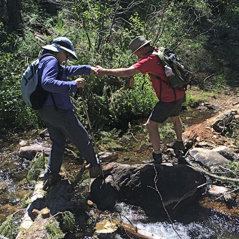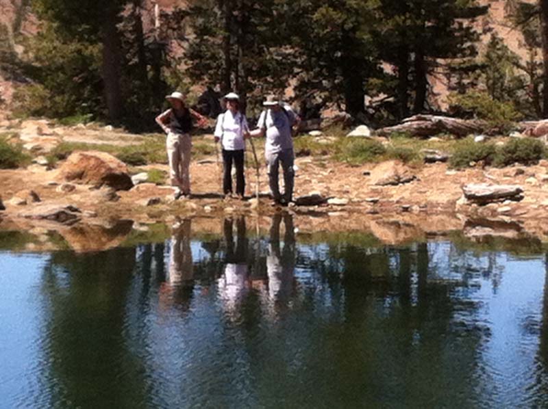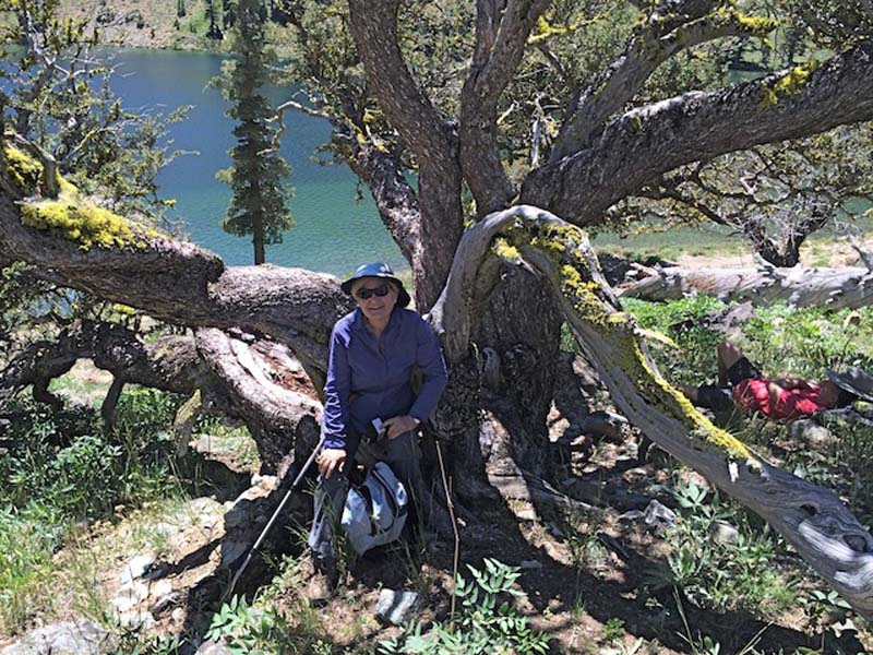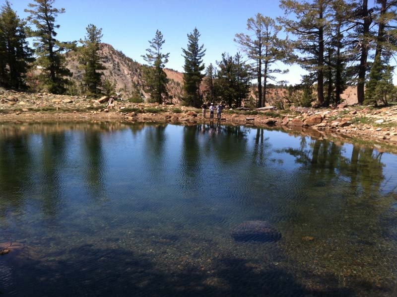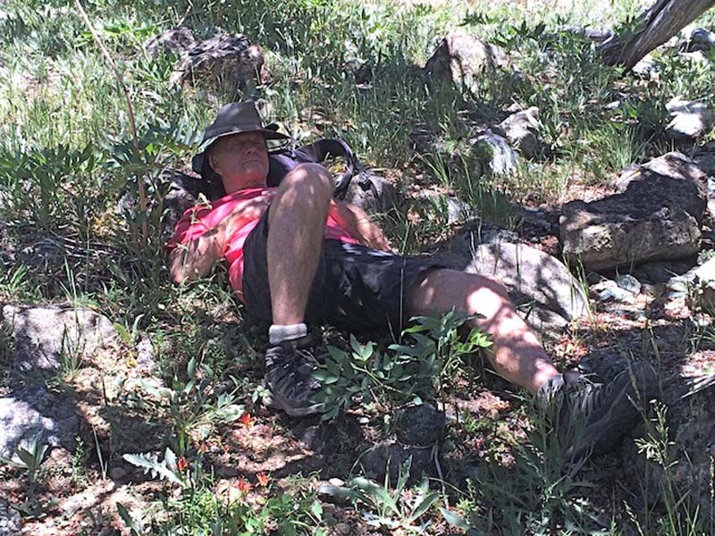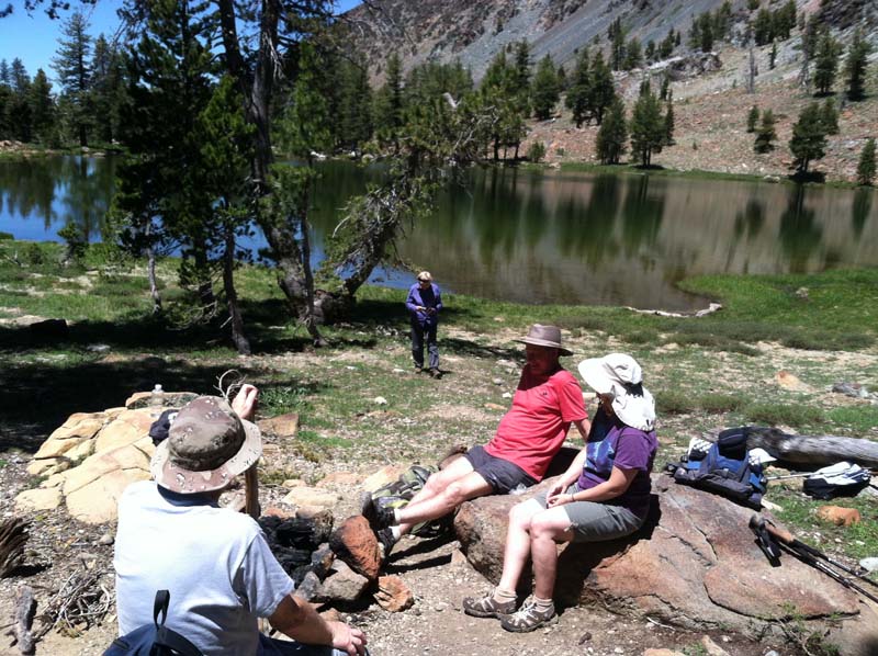 Cool air temperature along with a cool breeze made for perfect hiking conditions. We ate lunch at Upper Deadfall Lake, then six people made the trip up to the saddle above the lake.