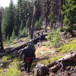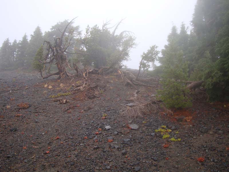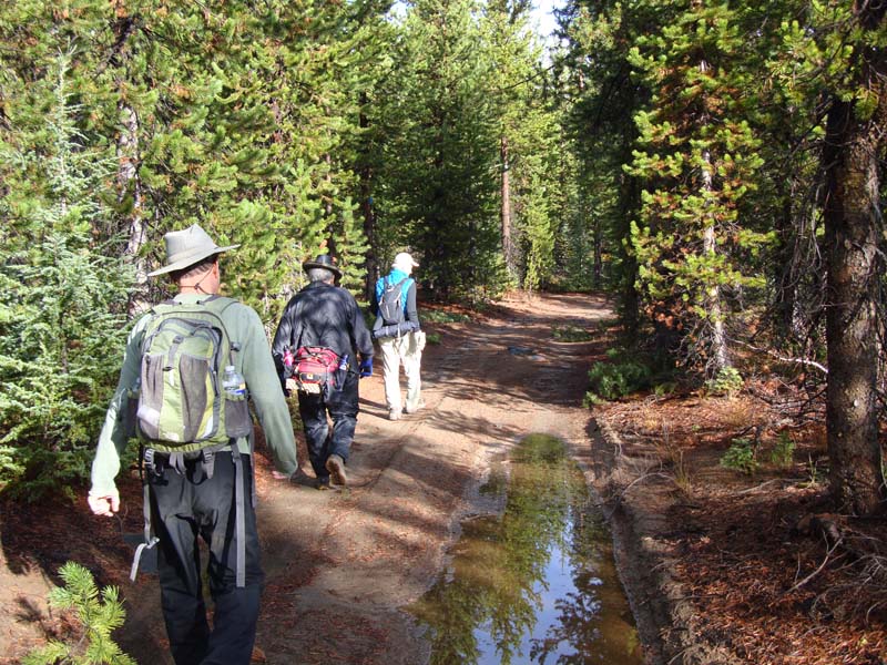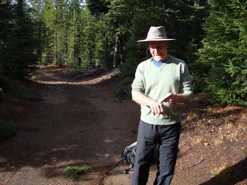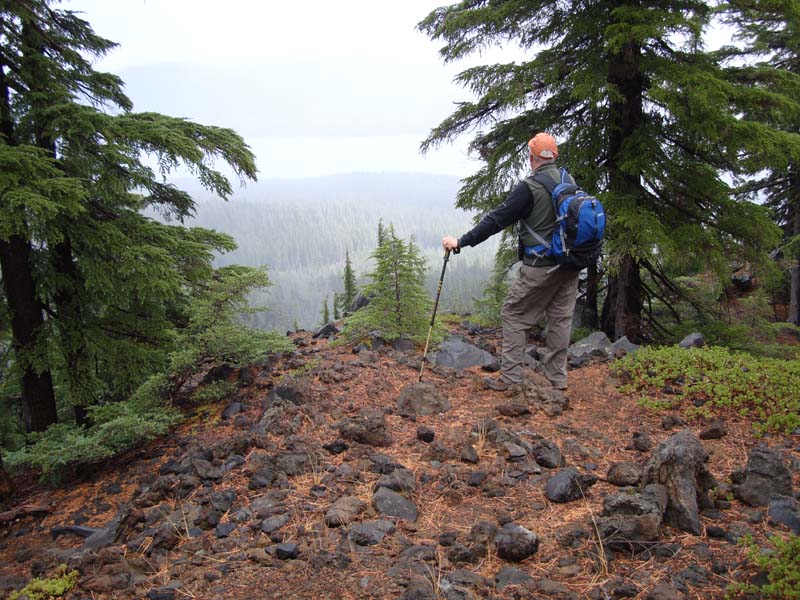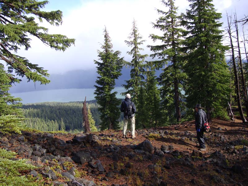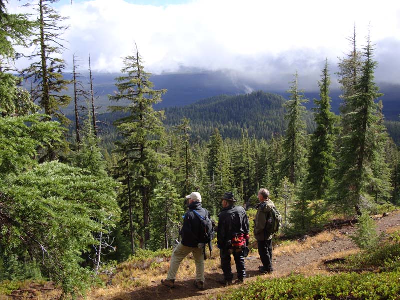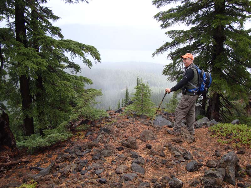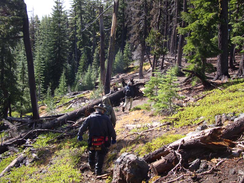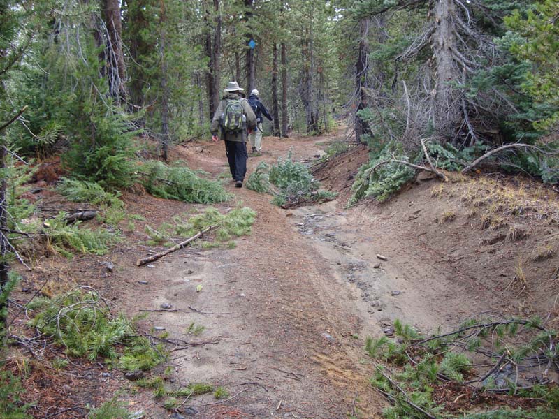 As we were driving in on FS-3703 we saw that there had been significant clearing work done, probably in conjunction with the Crater Lake fires of last summer. When we got to the FS-300 intersection we saw that it had been fixed and that FS-300 had been graded and the brush trimmed back. So, we decided to try heading to the upper trailhead. We got about 3/4 of a mile on FS-380 before deciding to park and proceed on foot. The brush has recently been trimmed back on FS-380, but the roadbed is still in bad shape. So, we walked a mile or so on the road to the upper trailhead.