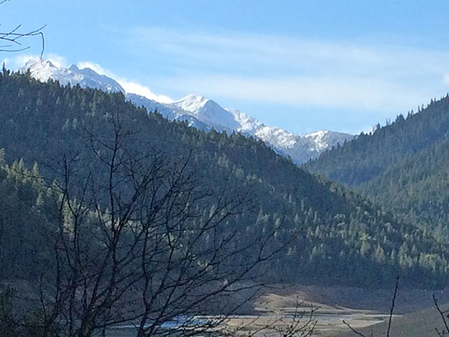 The lake was still very low, but it was a treat to see the snow-covered peaks of the Siskiyous. We stopped for lunch on a sunny slope above the lake when we reached the first picnic bench. We don’t know whether this was Hank’s Point, because none of us was present at the naming of that particular feature.