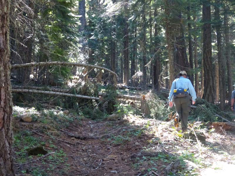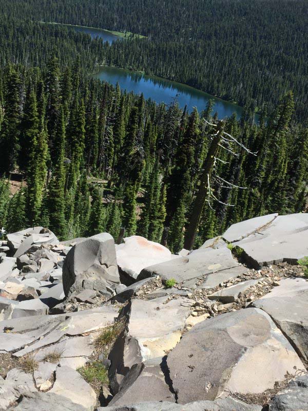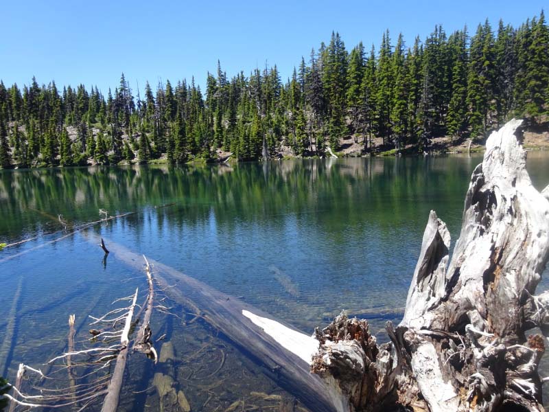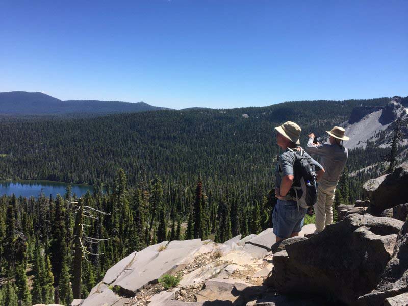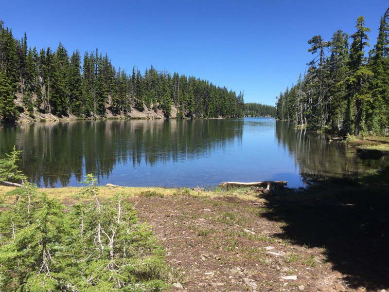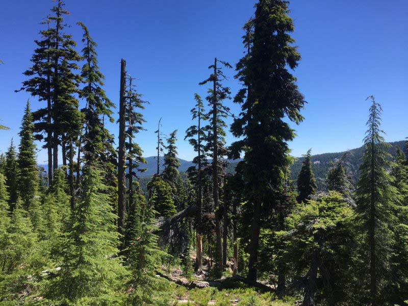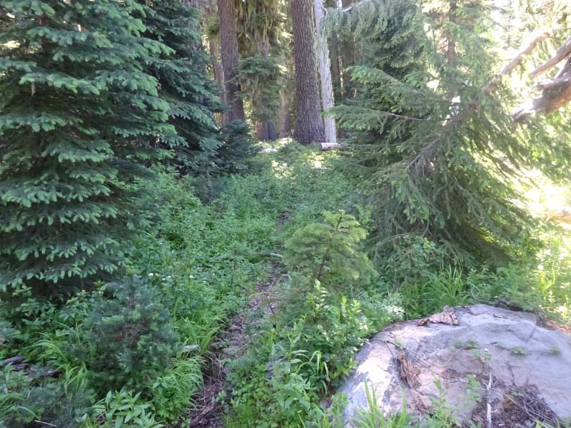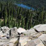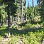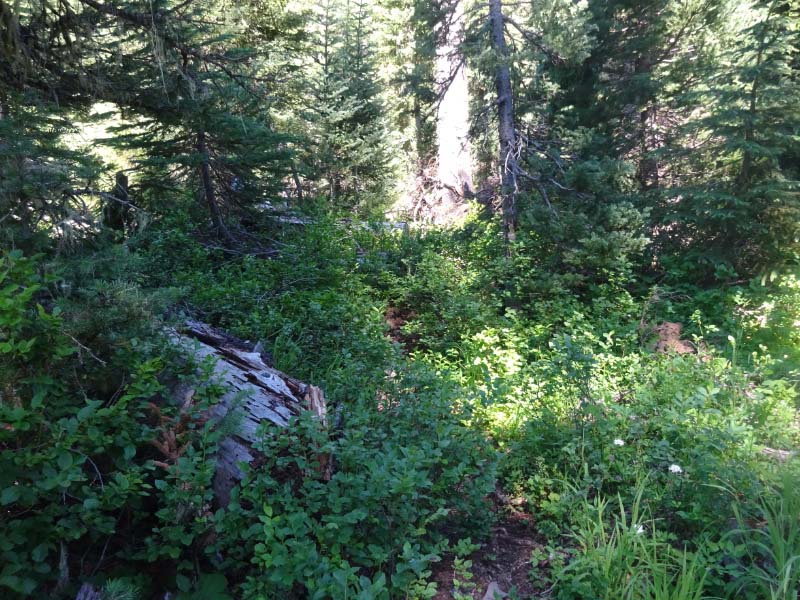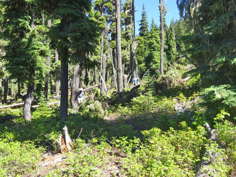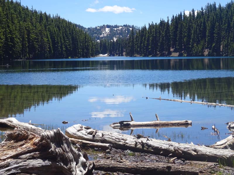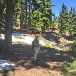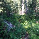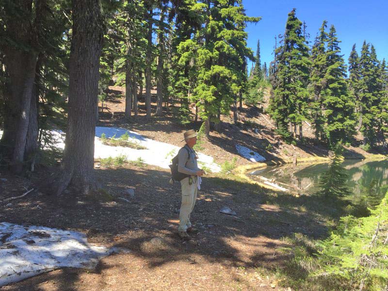 The day started out with perfect weather. The drive up to the trail head was mostly paved and we started hiking in low 60’s weather. The first mile had extensive downfall (trees across the trail) and the mosquitos were out in full force (thank goodness for Deet). We met two fisherman coming down the trail and they said the trail above was much better, so with our spirits lifted, we kept going.