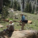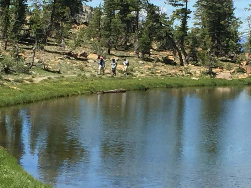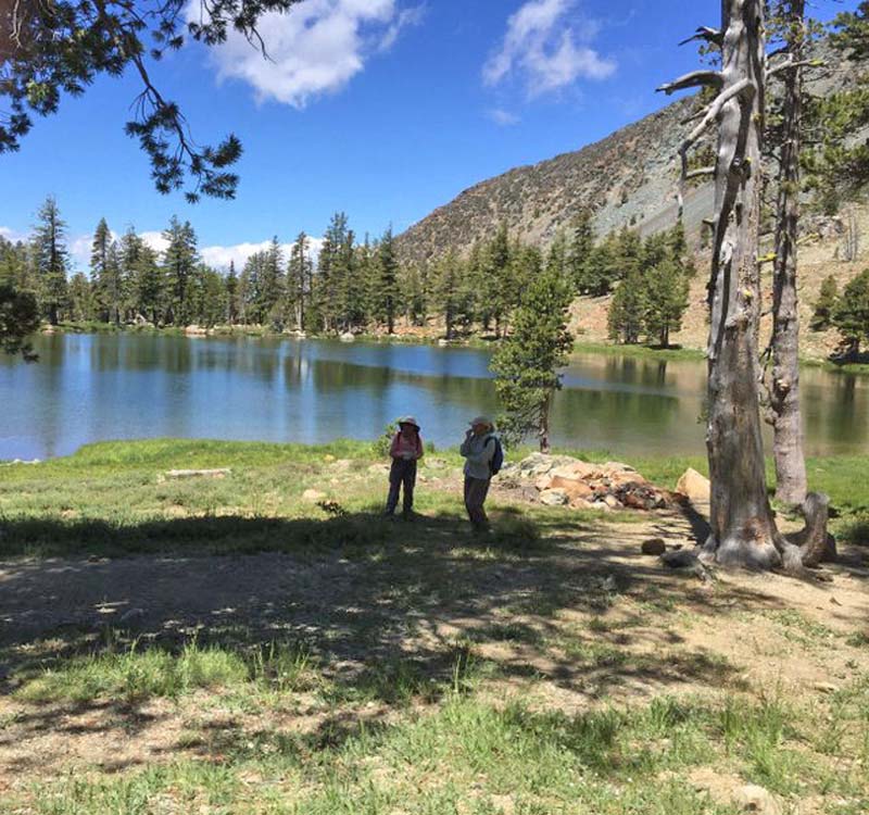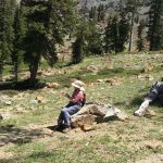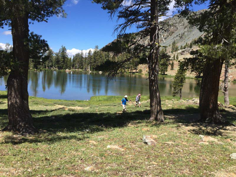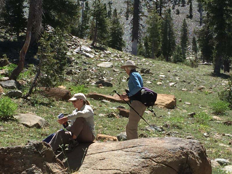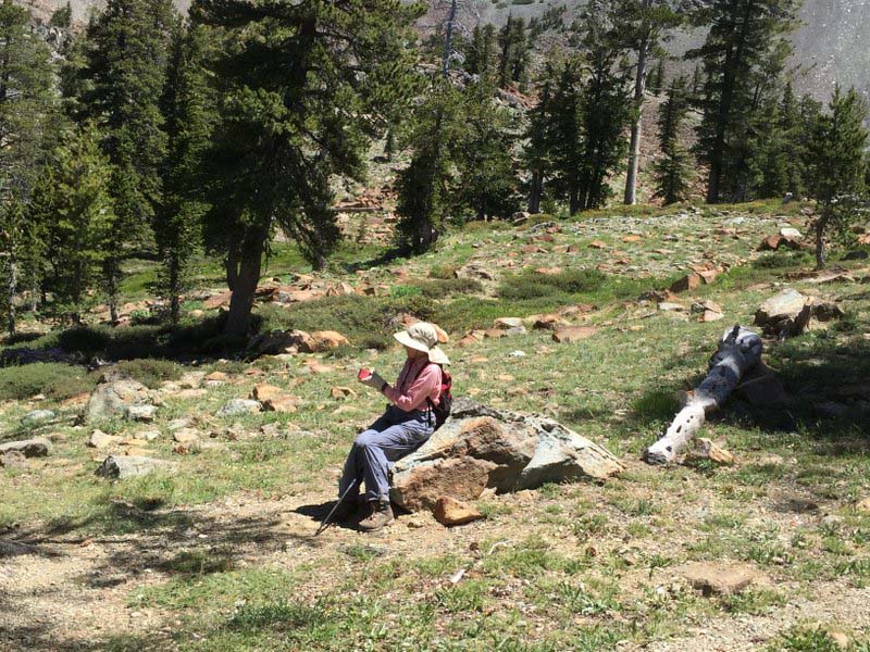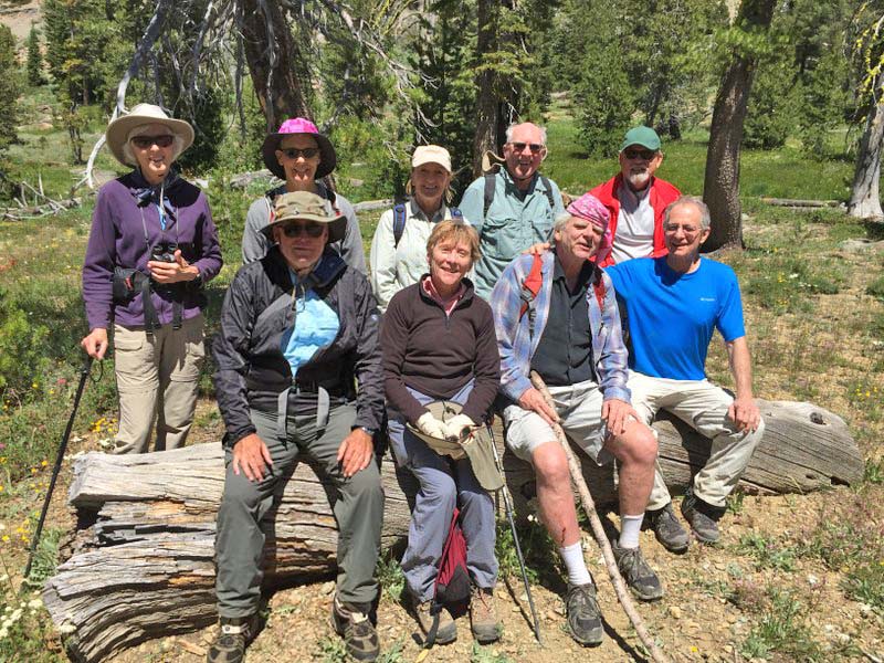 A group of 9 hikers made the trip to Deadfall Lakes. We started from the lower trailhead which turned out to be less than optimal. There was more water in the streams than in previous years so crossing the meadow took some doing. Making up for it was perfect weather for hiking.