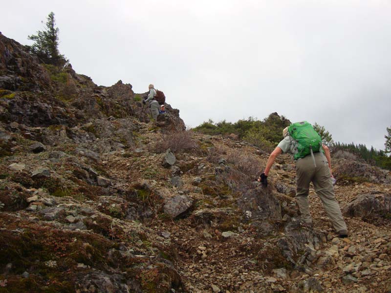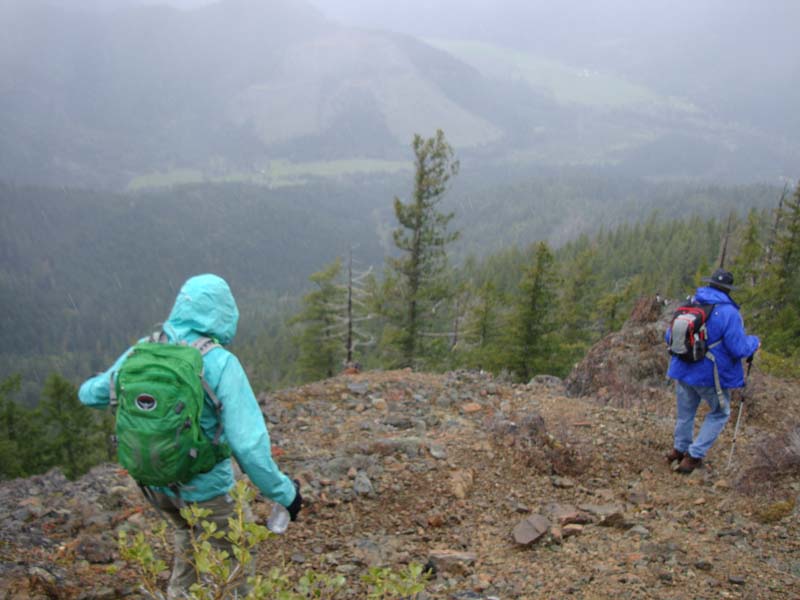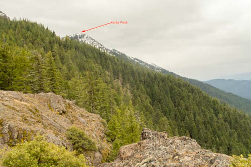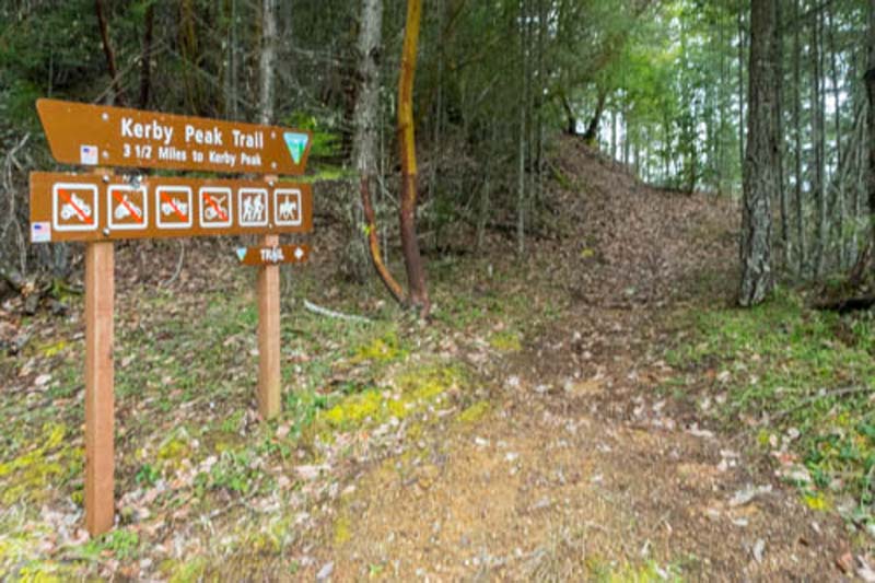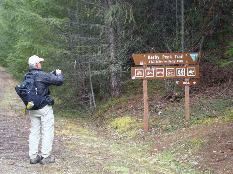 We started our hike to Kerby Peak under cloudy skies and temperatures in the mid to high 40’s. The weatherman forecasted 70% rain, so we were prepared, but hoped for the best.