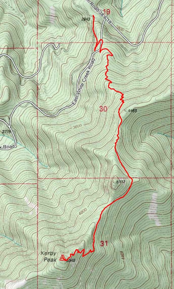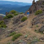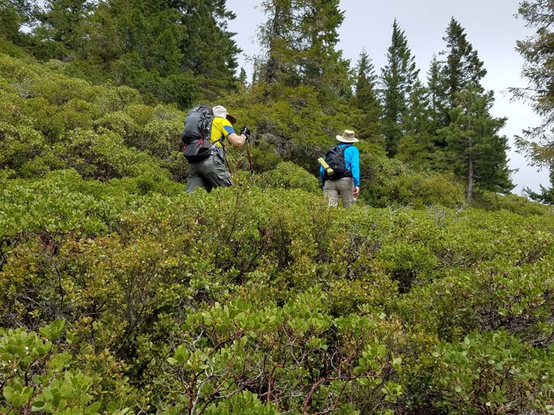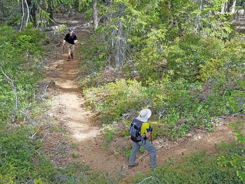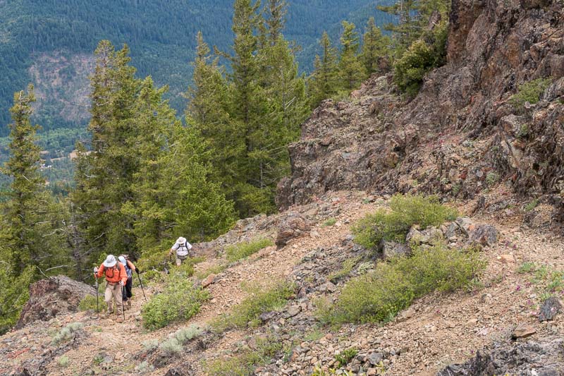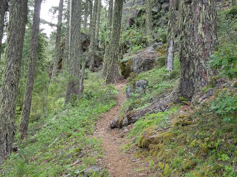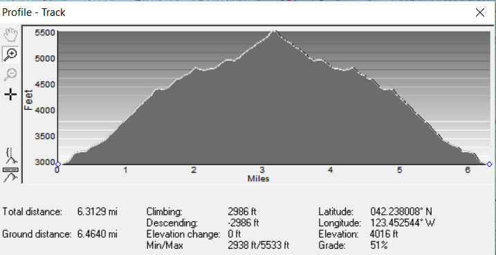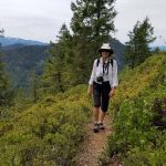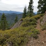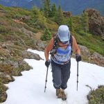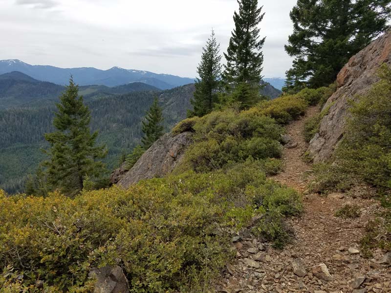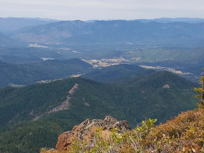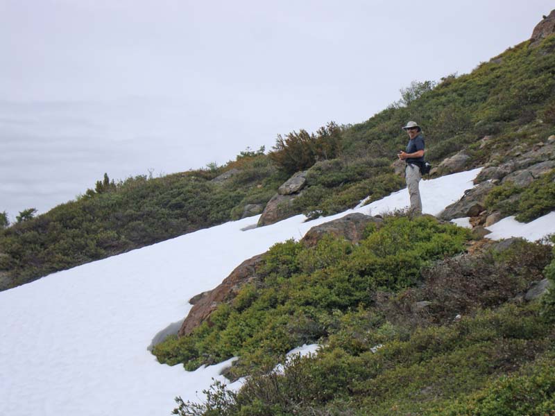 Back to the hike – today started out in the mid 60’s under cloudy skies. This hike climbs 800 feet every mile for 3.5 miles. We started out in the forest, then broke out once on the ridge for a bit, then back in the forest for the remainder of the hike to the top. We did make it to the top this time, unlike our failed attempt due to snow in April. The only snow we found was near the top and there was only 15 feet of hiking on the snow to make the ascent. YEA!
