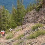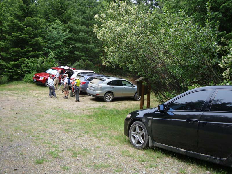 Although this is one of the more challenging hikes in our portfolio, we started with 14 people and met 2 more hikers up on top. However, as we were driving up the last mile of the road to the trail head we encountered a relatively new born fawn (I am thinking hours old), who was still learning how to walk. Unfortunately, his walking exercise was right up the middle of the road. We decided to wait for a clear road before passing. After the fawn walked (or stumbled) about 50 feet, the fawn finely exited to the right and onto a grassy area, along with mom. All seemed fine as we passed.