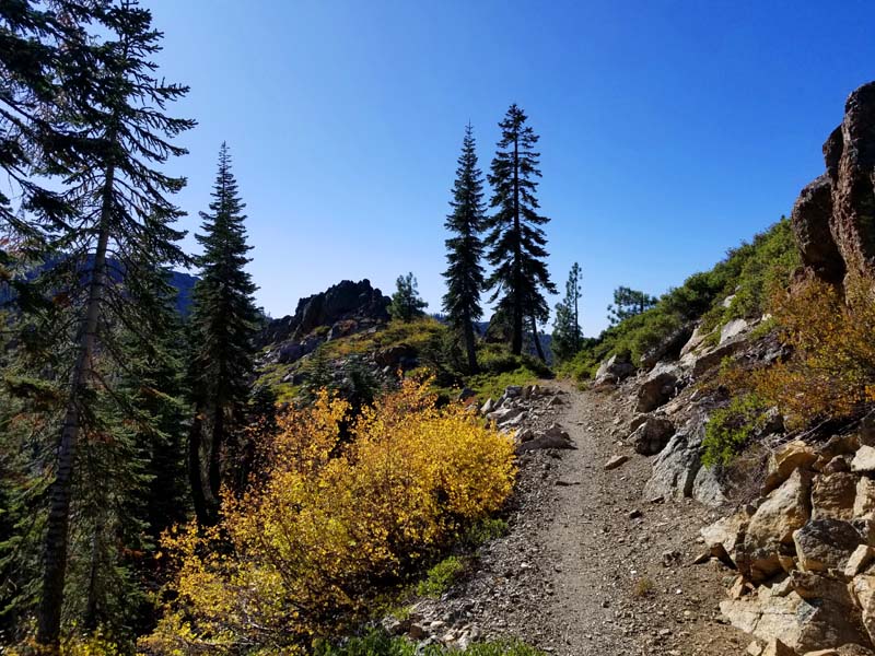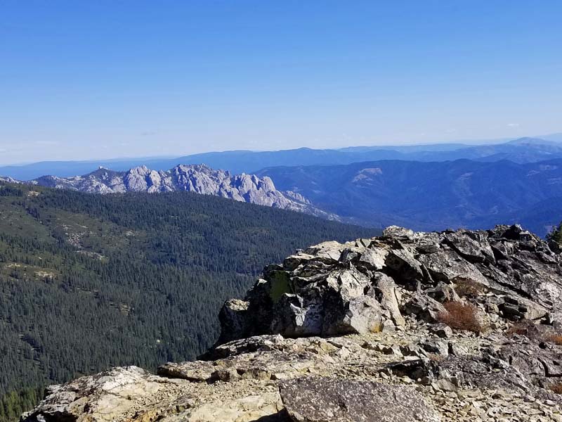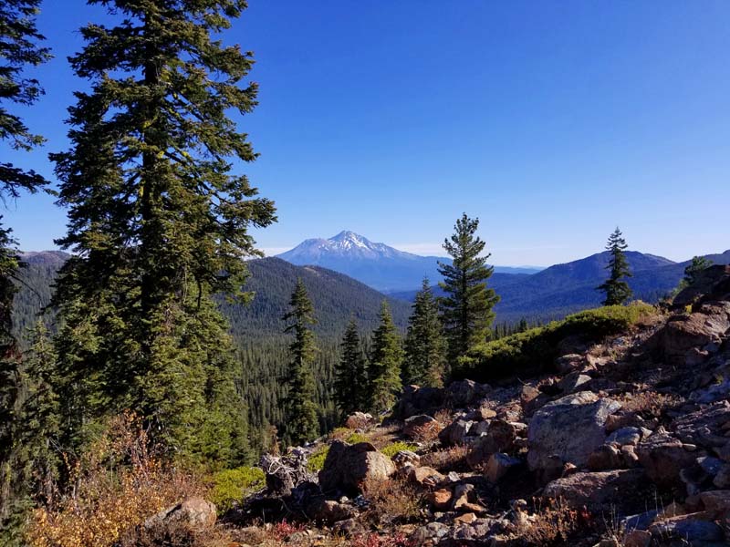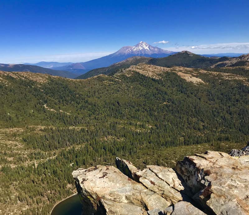 Clear skies and temperatures in the 50s and 60s made for delightful hiking. We had great long-range views with Mt. Lassen clearly snowcapped and visible at 70 miles, Shasta at 23 miles and Trinity Lake at 17 miles.