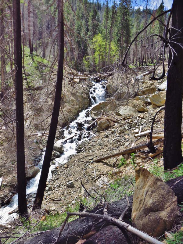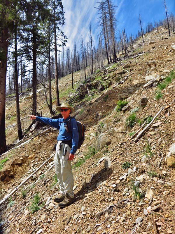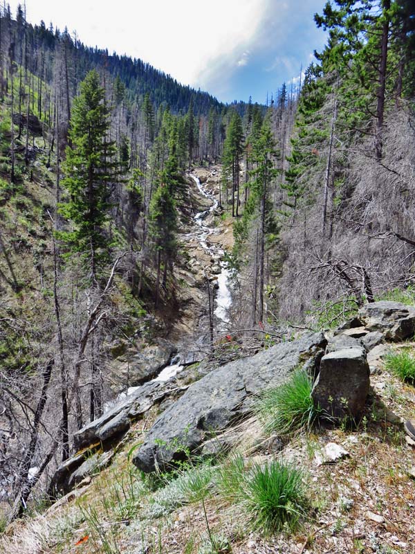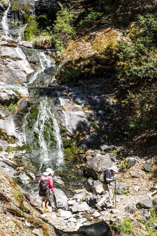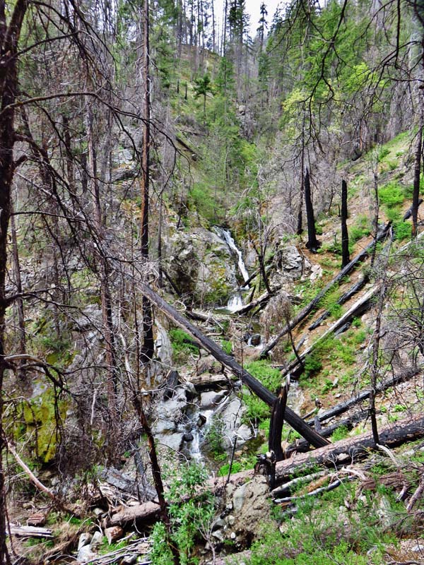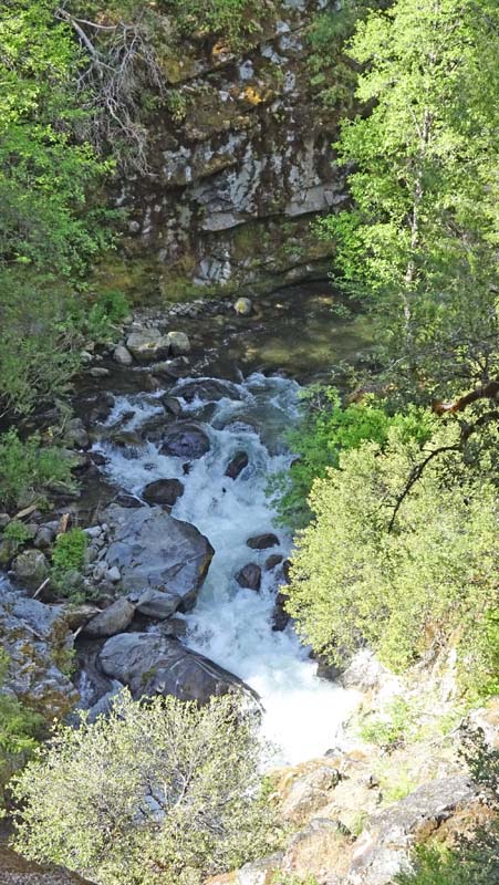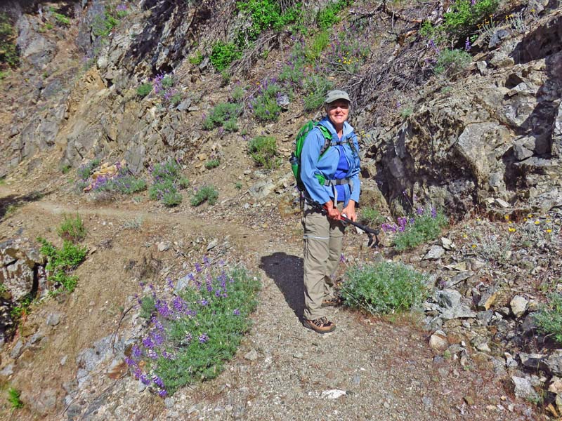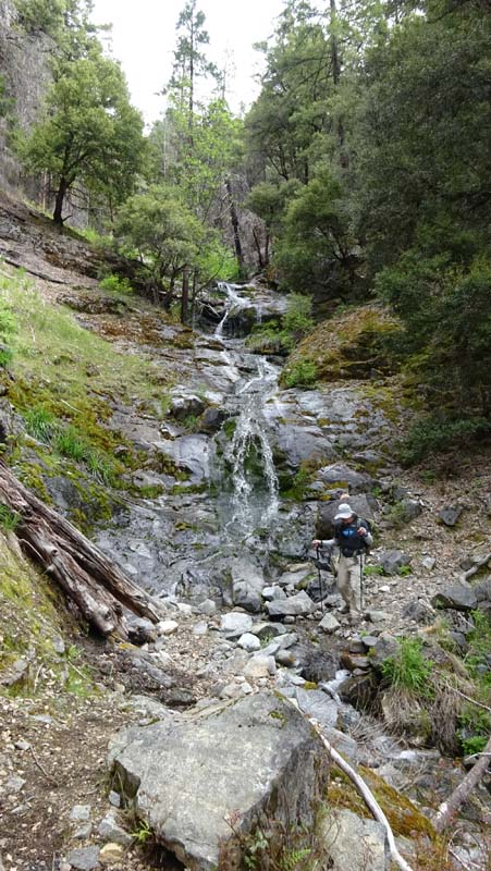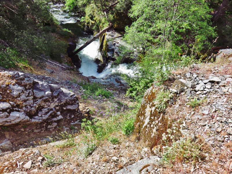 There were plenty of flowers, along with lots of dogwood trees in bloom. Along the trail were many waterfalls for our added enjoyment. Of course the poison oak was growing like crazy and trying to takeover the path in a few places. The trail ended at a landslide, which happened last year, that had cleared enough trees to unblock the view of Maple Falls. Yes, the falls also were significantly altered by this very large landslide (think 600 feet wide and a 1,000 feet long). Because of the altered landscape, our views during lunch were spectacular of the falls and the cascading creek.