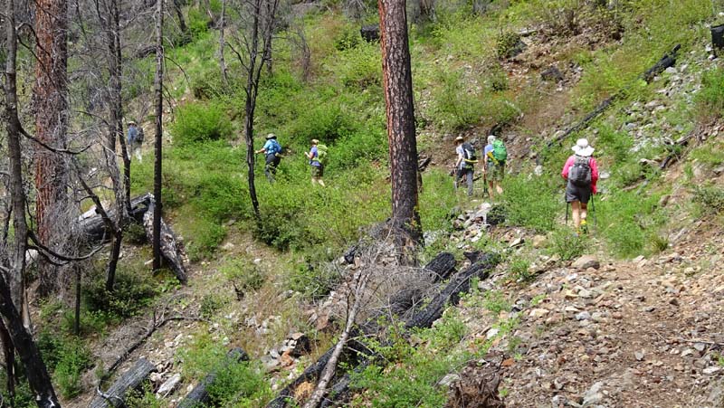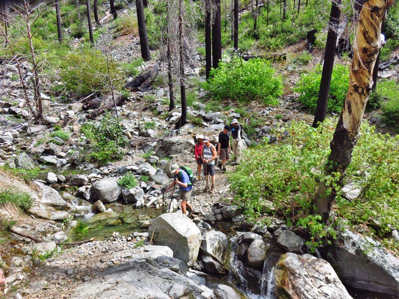 We did have to cross several active creeks, but everyone made it safely, although one person did have an accident on the trail. All were fine by the time we returned to the cars and refreshments were taken outside on the deck at the Jefferson’s Roadhouse in Yreka.