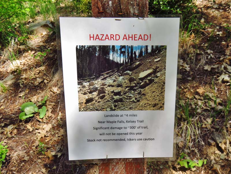 Nine hikers headed to Kelsey Creek to see what Mother Nature had done this year. This is a great hike in the spring, hiking up next to a raging creek for 4.5 miles and having lunch with the thundering creek and Maple Falls right in front of us. The weather was perfect, starting out in the low 60’s and ending the hike in the mid 70’s.