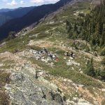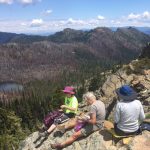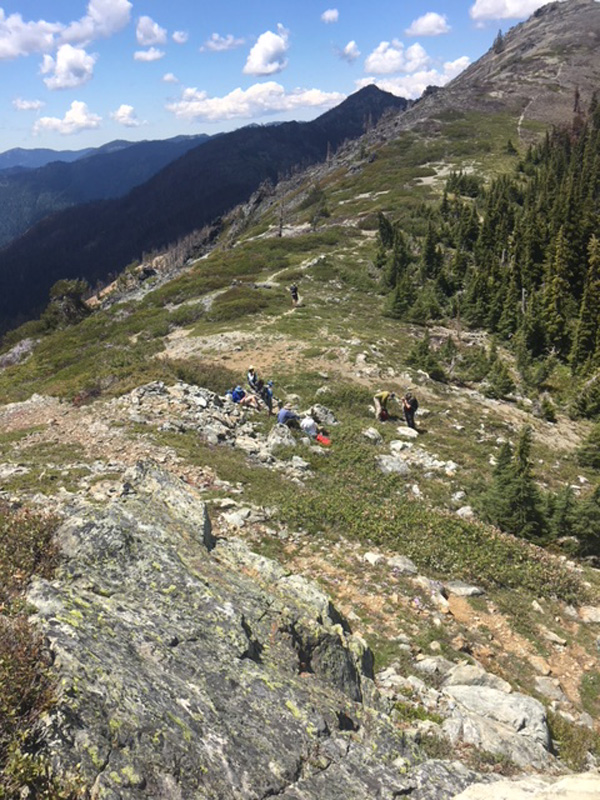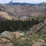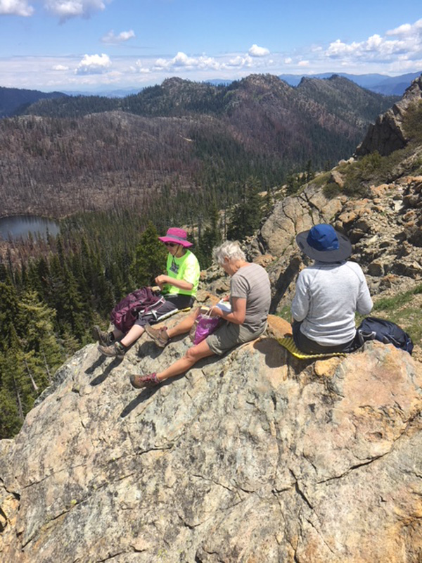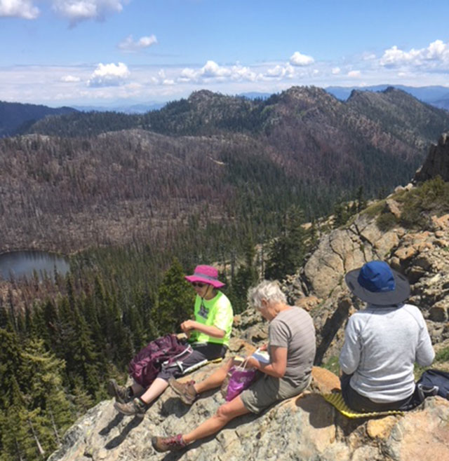 After a long walk we gained the trail over a crest and around Buck Peak. There had been a huge forest fire and you could still smell the smoke. We gained the saddle and were greeted by a lovely breeze. Azalea Lake was there below us and we spread out over the rocky hill for lunch.