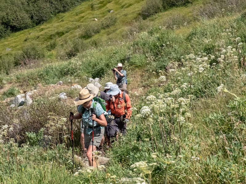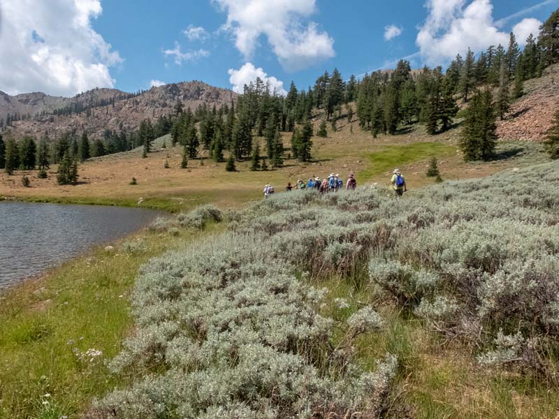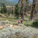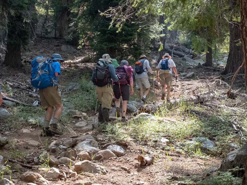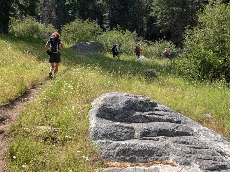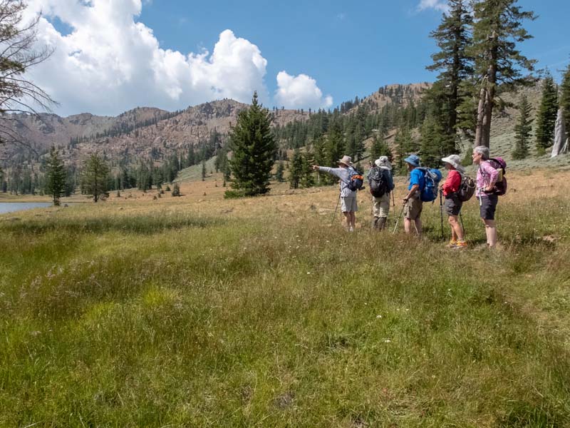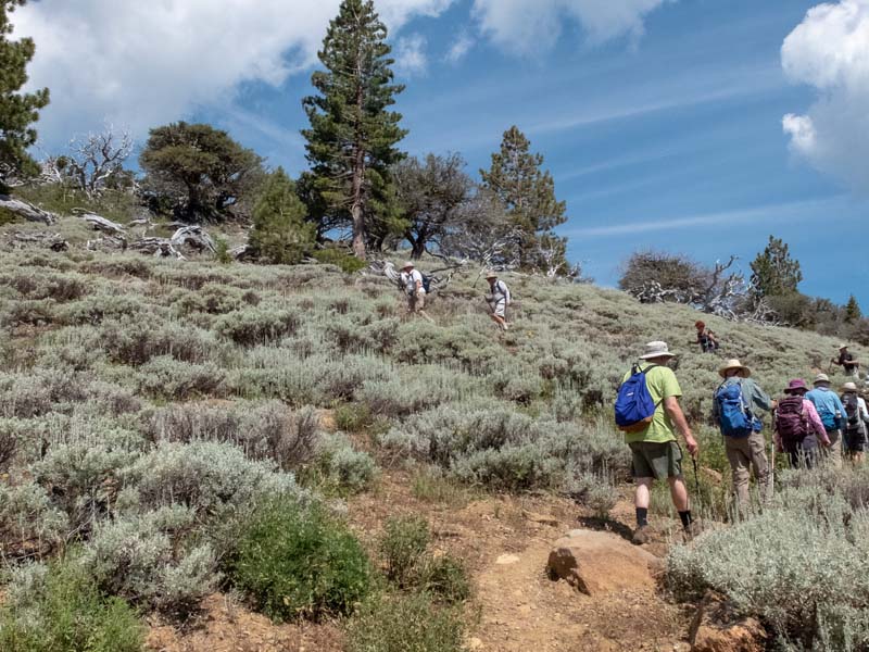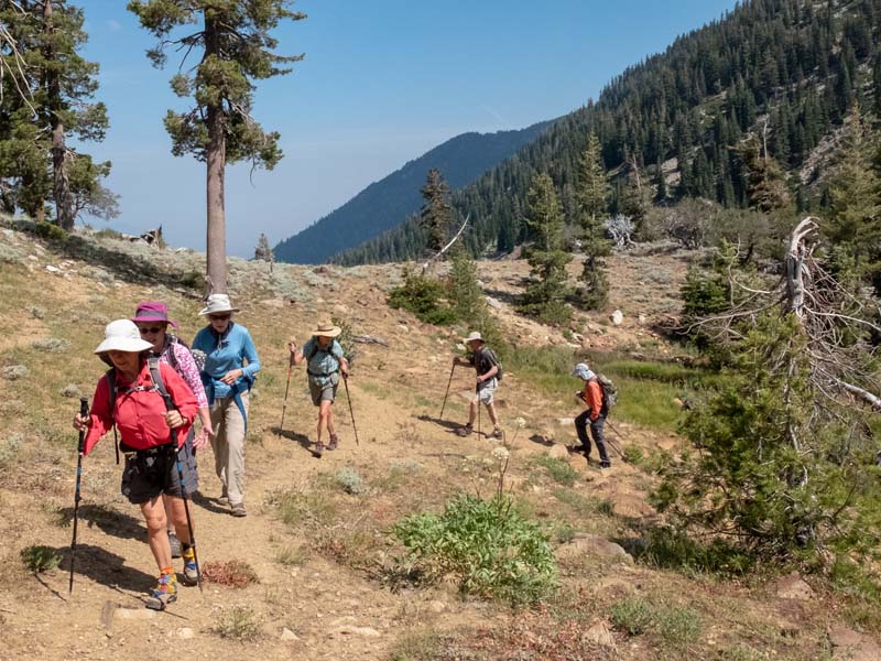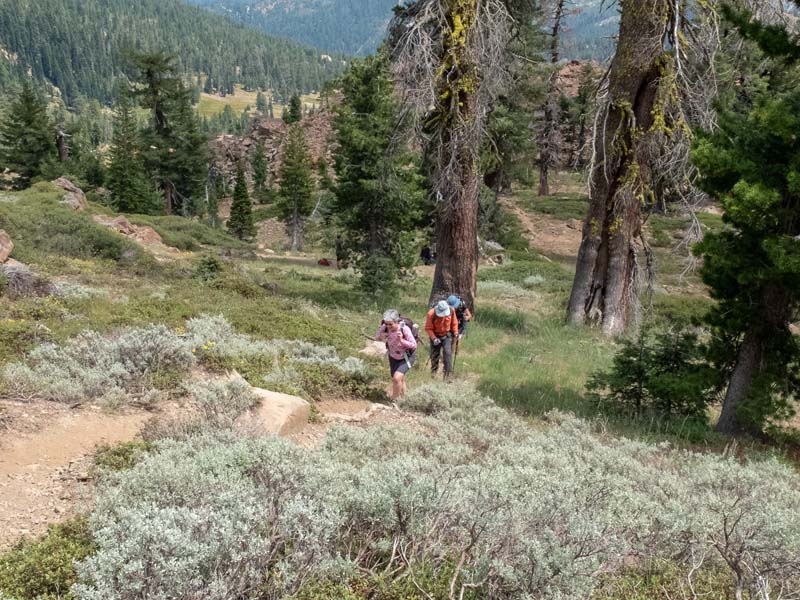 After lunch we descended to the cross-over to the lakes. Everyone again went at their own pace and were told to turn left up to the ridge at the hole in the tree, which will be much further than you expect. On the PCT section we met a dozen PCT hikers and talked to a few.