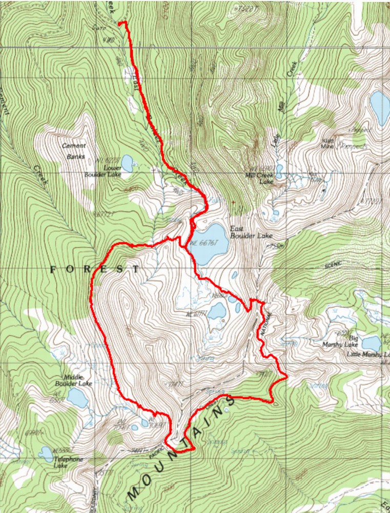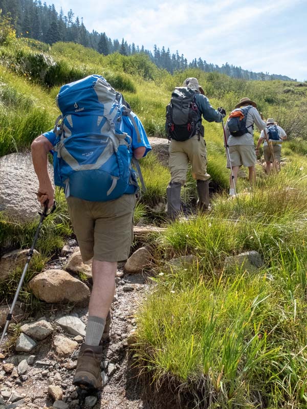 We gathered again at East Boulder Lake and Sabin Phelps decided he was Michael Phelps and went for a short swim in his hiking outfit. Jerry Lafontain, not to be outdone, stripped to his couturier undies and went for a swim as well. Received a 6 point rating for his crawl.