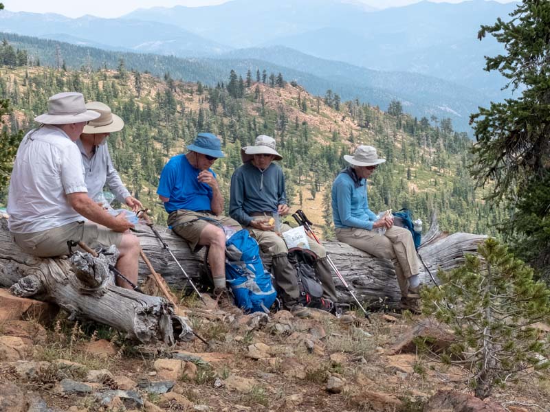 We did the hike at decent speed but not pushing too much. There is a lot of ascent, some 2600 feet. Those new to the hike were astounded by the scenery. We did the ridge tour counter-clockwise which meant a tough hike up switchbacks to the ridge but everyone went at their own pace and we met on top. 5 minutes later we were at the perfect lunch spot with logs to sit on and fabulous views to the south.