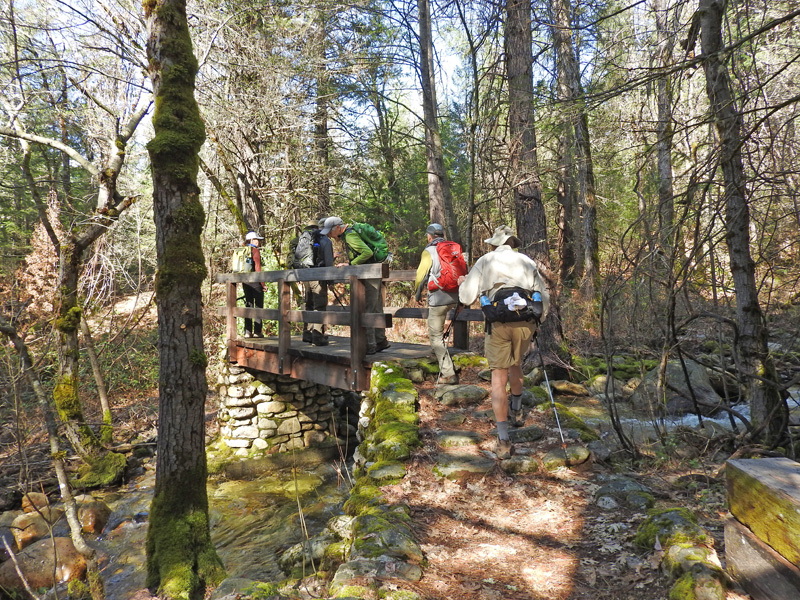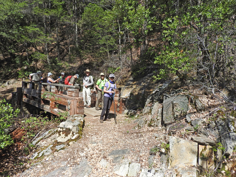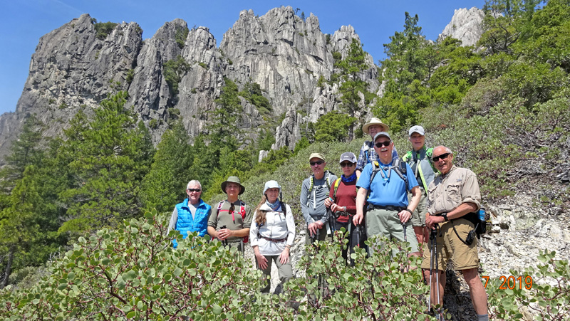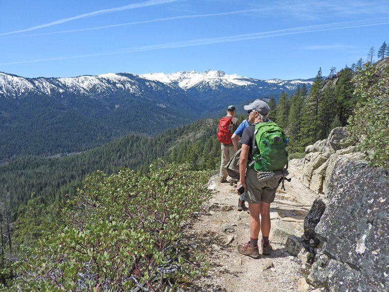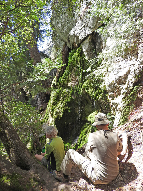 By pure chance, Wednesday turned out to be a perfect hiking day. It started in the low 60’s and ended up in the mid 70’s with few clouds in the sky. We drove to the trailhead and began hiking up the Flume Trail, then east along the PCT on our way to Indian Springs at the base of the large granite slabs near the top of the Castle Crags for lunch.