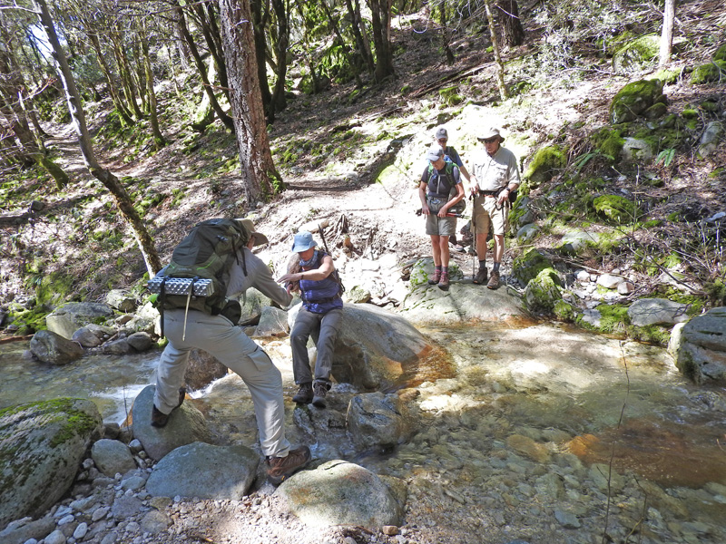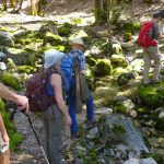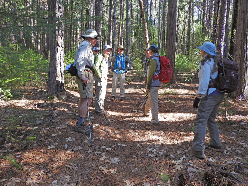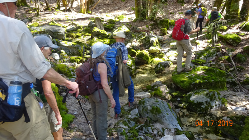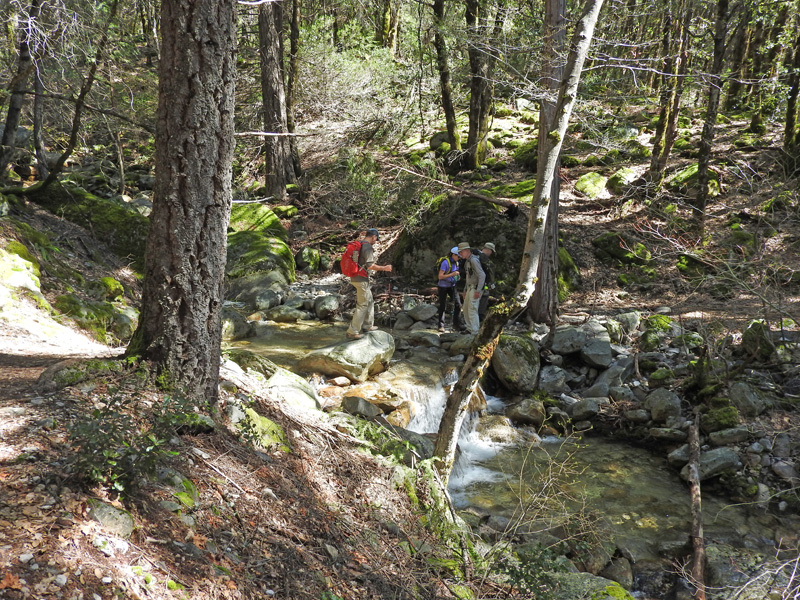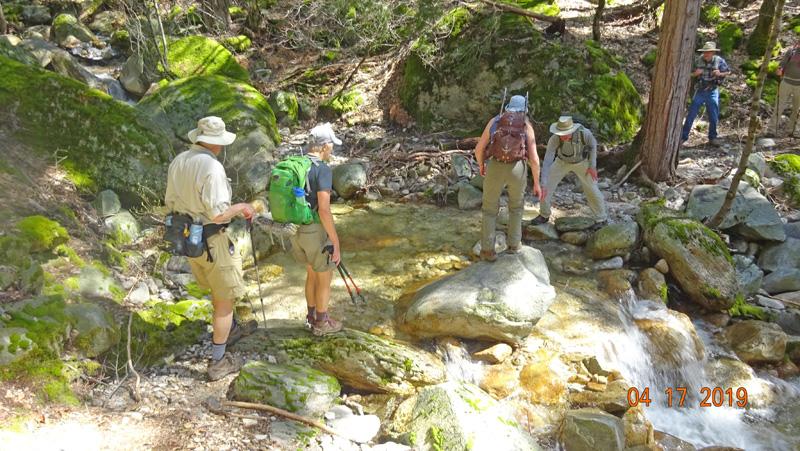 There were many active creeks running across the trail as we climbed up through the forest. Crossing a couple of them proved to be difficult, but the team did a masterful job in overcoming the challenges. Mt. Shasta could be seen, covered in white and shown in all its glory. Lunch was delightful, with several springs dripping nearby over thick moss, plenty of places to sit and lots of shade from the sun.