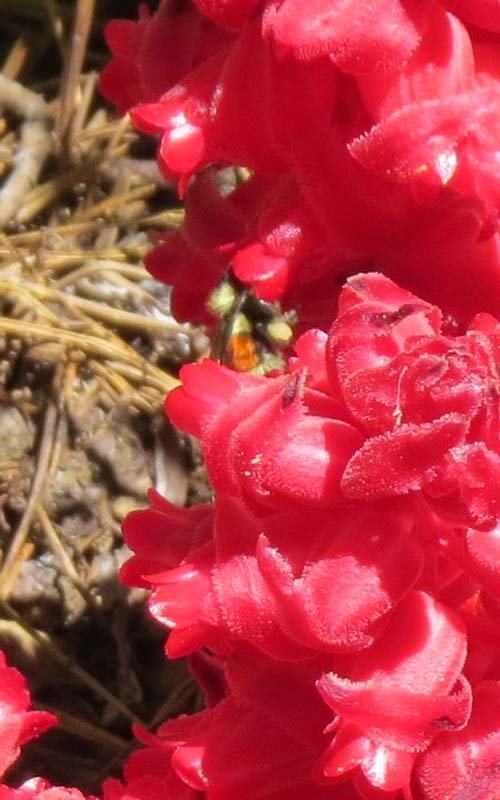 We saw many flowers including pine drops, arnica, prince’s pine and ground cones. The view from the rock out cropping was spectacular. The sky was blue and amazing.