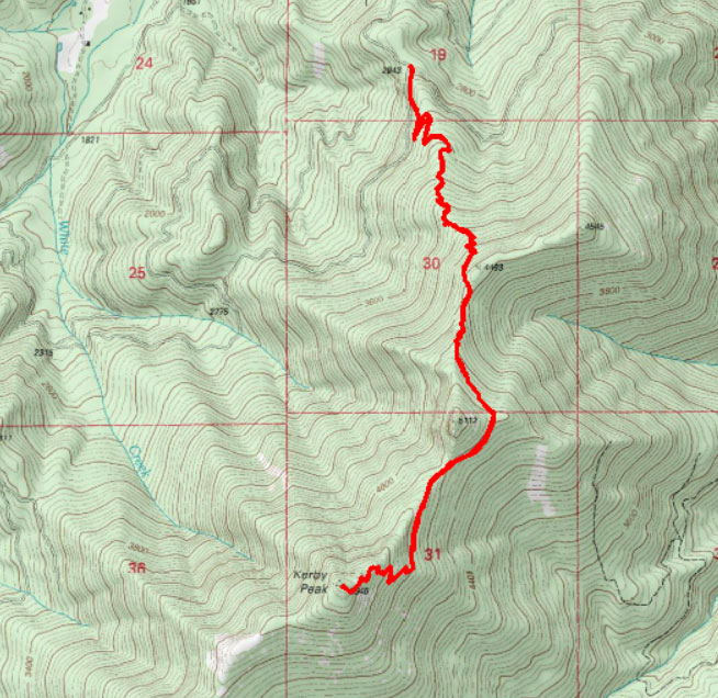 Kerby peak has a reputation for being one of our harder hikes. 9 people decided to take on the task this year. We started up the trail around 9:40a.m. The incline of 2700 feet in a little over 3 miles didn’t seem to bother anyone.