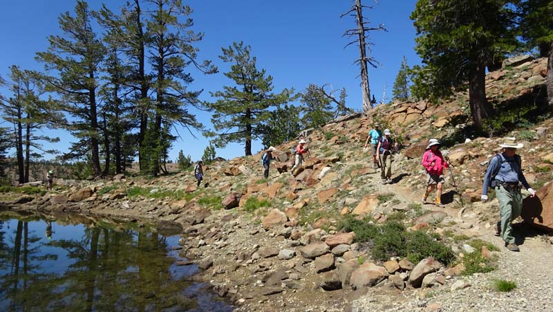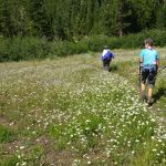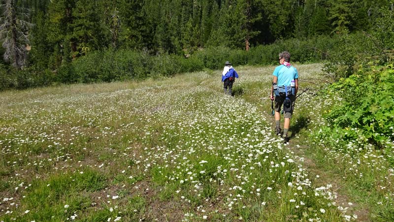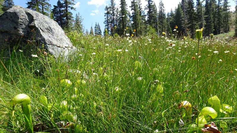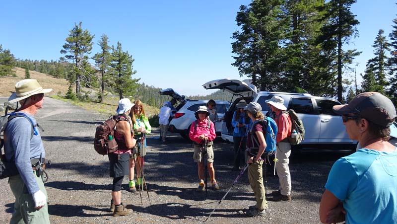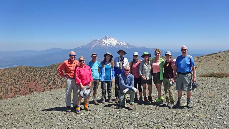 Fourteen of us headed south to conquer the mighty Mt. Eddy. The weather was perfect, although in the sun it was a bit hot and sunscreen was definitely in order. We started on the upper trail and met several PCT hikers heading north from Mexico, include two through hikers from Croatia. There were many flowers along the way, especially in the open meadows. We saw several patches of Darlingtonia Californica, also called the California pitcher plant, on our way to the trailhead and along the hiking trail.