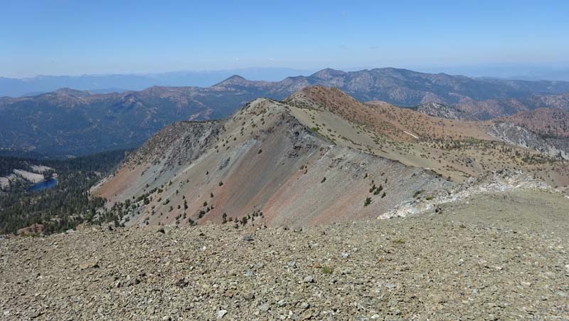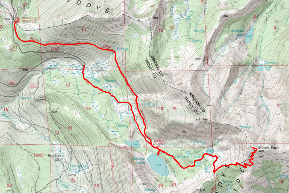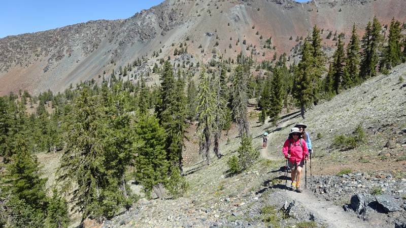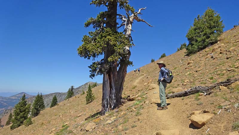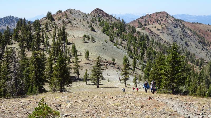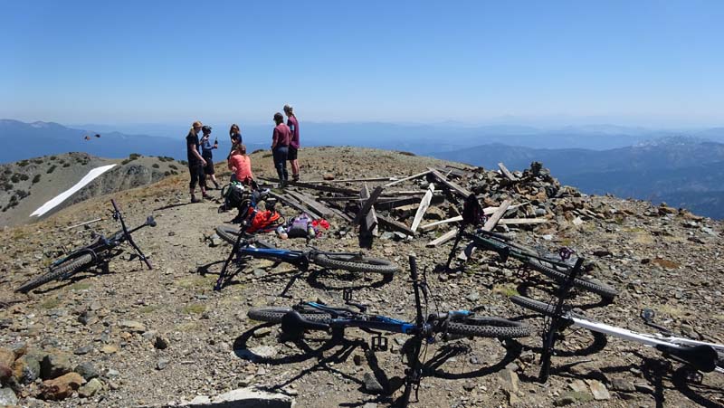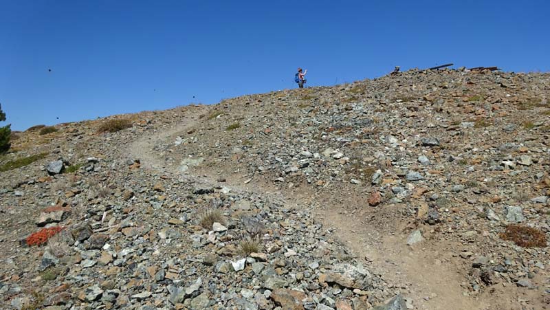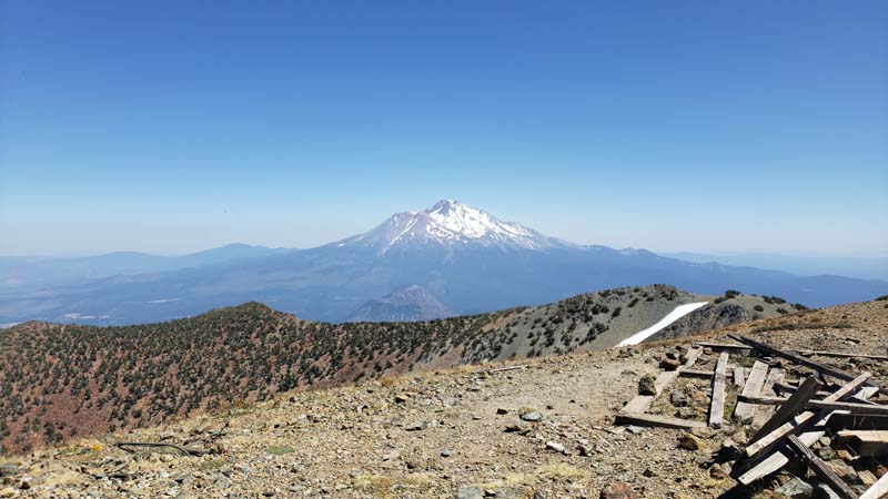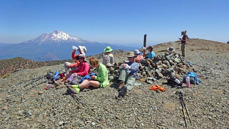 At the PCT/Mt. Eddy trail junction we turned left and headed up to the top. We passed a guy on a mountain bike, who indicated there were many young ladies behind him. Of course we thought he was nuts. When we reached the top there was a kaleidoscope or swarm of butterflies on top.