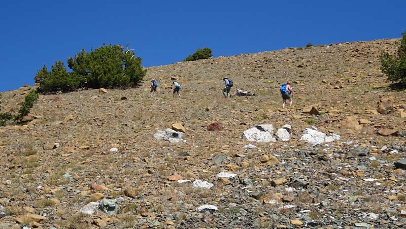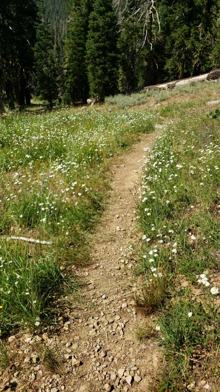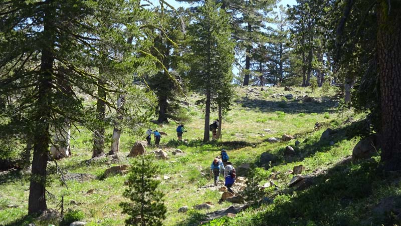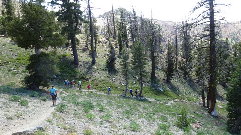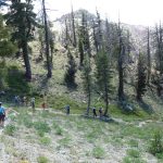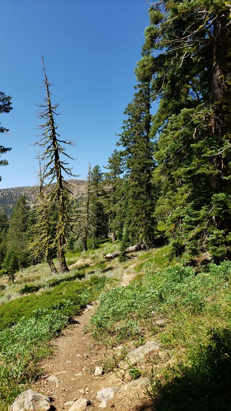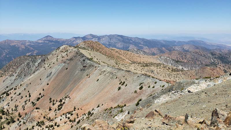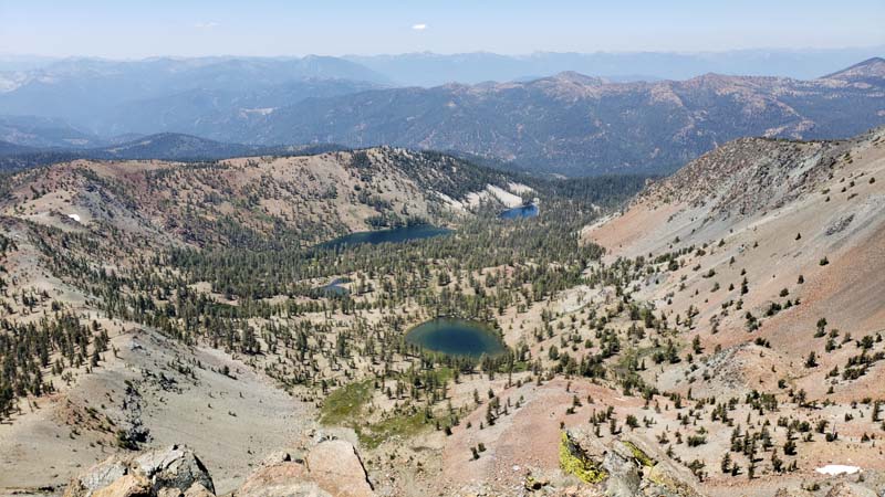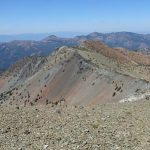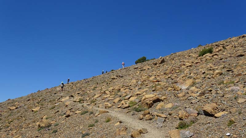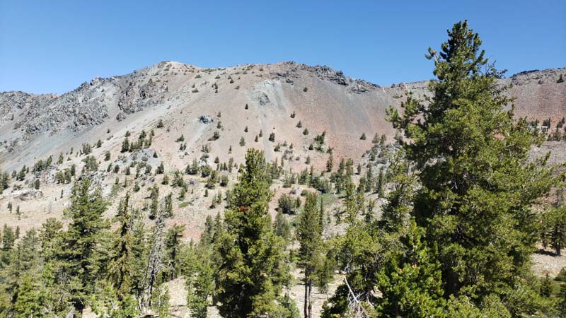 At the PCT/Mt. Eddy trail junction we turned left and headed up to the top. We passed a guy on a mountain bike, who indicated there were many young ladies behind him. Of course we thought he was nuts. When we reached the top there was a kaleidoscope or swarm of butterflies on top.