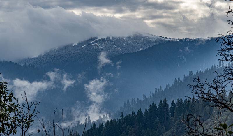 The seven of us did experience some smoke from the control burn near the reservoir before we turned down Fell On Knee. We stopped for lunch at the rock formations at the junction of the Wonder and Fell On Knee Trails. Mt. Ashland was somewhat cloudy but still beautiful. Linda took the worm eating leaf photo there. She was excited to see a man made version of the worm trail coming back on Hitt Road. The hike was about 6.8 miles (depending on whose GPS we trust (or like). Elevation gain was about 1200 feet.