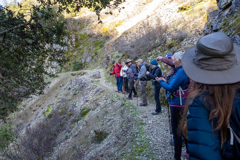 We had a good turnout of 10 on a beautiful winter day with sunny skies and temperatures in the high forties. The trail was in good shape as we did the many ups and downs along the river.