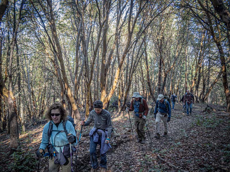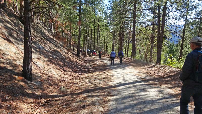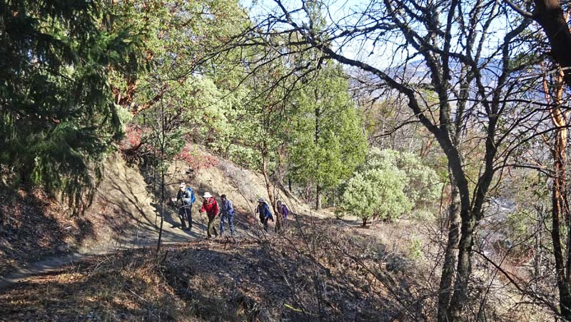 It is a very steep trail at the beginning, but after 10 minutes, we were warm and warmed up. The trail was in good shape as we wound our way up to the top. On the way we passed several burn sites that were still smoldering and were warned that there would be more burning on that side of the hill. We were glad the route down was on the other side.