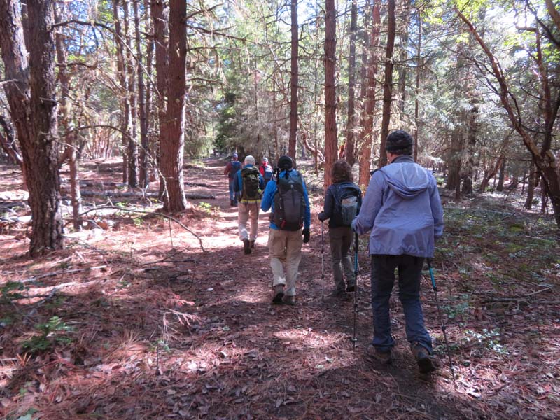 After a Maria style lunch, we headed back down to the cars. However, when we got to a fork in the trail, we decided to turn right instead of the usual route left. We ended up taking the Fall-on-Knee trail, which was new to some of us. Refreshments were taken at Caldera. It was a perfect day to be out and hiking in the Ashland Watershed.