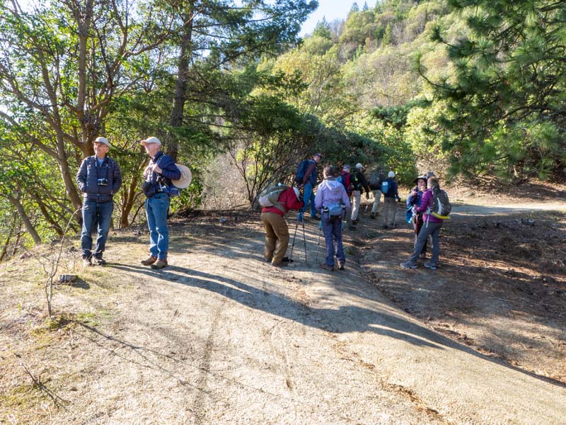 Thirteen of us headed to Hitt Road to discover many construction trucks in our normal parking places from a home being built nearby. With some help from an early arriver (Maria), we were able to park very close to the trail head and were on our way.