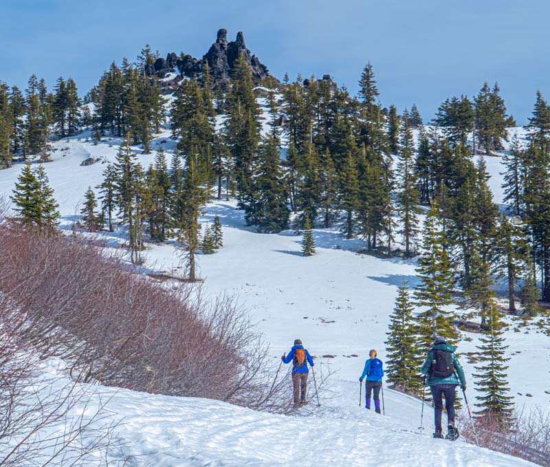 On our return, Linda went up the mountain road far enough to capture some pictures of a group in action. On the way back, we found the sun melting what we assumed was a survival “igloo” the students had learned to build early in their outing. Take a look at the SOU website to learn about the Outdoor Adventure Leadership (OAL) program: https://sou.edu/academics/outdoor-adventure-leadership/programs/outdoor-adventure-leadership-ba-bs/