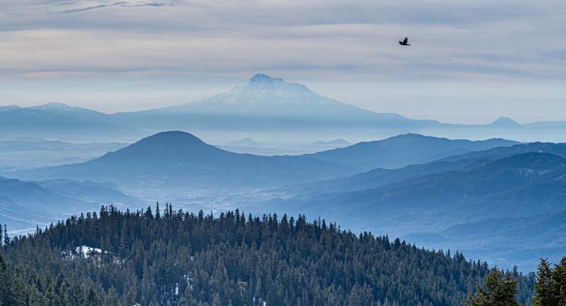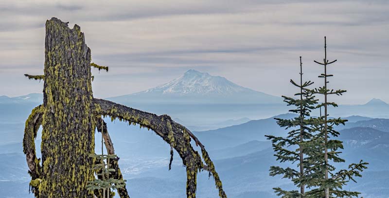 Mt. Shasta was in full view through the haze from controlled burning in California, giving the landscape hues of color reminiscent of the blue ridge mountains. Skies were crystal clear on the Oregon side. Randy and Linda took fantastic photos along the way.