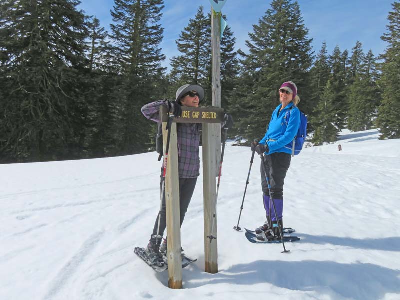 Four hikers (Elisabeth, Margie, Randy and Linda) enjoyed the five-mile RT to the Grouse Gap shelter for lunch. It was a terrific spring day and the snow was packed but not icy. The sunshine softened the snow for the afternoon XC skiers we encountered.