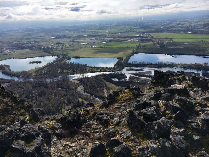 After the morning clouds burnt off it was a beautiful day in the 50s with excellent views of the surrounding mountains, Upper Table Rock and the Rogue River down on the valley floor.
