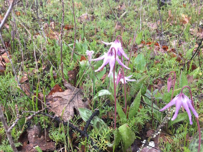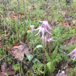 Two hikers practiced social distancing while seeking out new Spring flowers. Among the wildflowers we spotted were buttercups, gold field, many fawn lilies and hounds tongue, purple eyed grass and the first blooms of the bleeding heart plants. We used our phones to snap pictures.