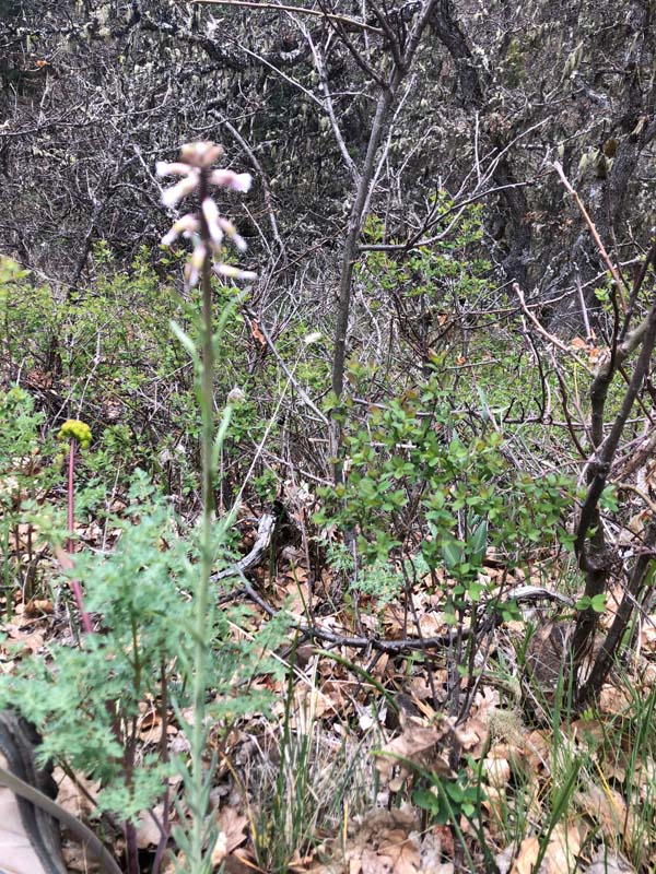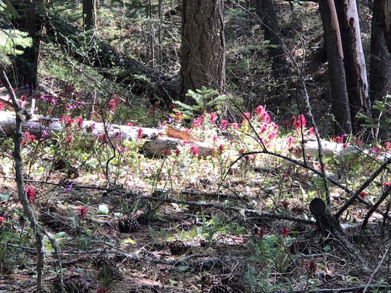 Denise, Nanci and I headed up the PCT to the Pilot Rock trail yesterday from the Old Highway 99 trailhead. Thanks to rain-threatened skies, we had the trail to ourselves. Bottom line: It’s early days yet, but it’s going to be a helluva show in coming weeks. We did see lots of flowers, although most are just getting started, such as the fritillaries and shooting stars and Jacob’s ladders.