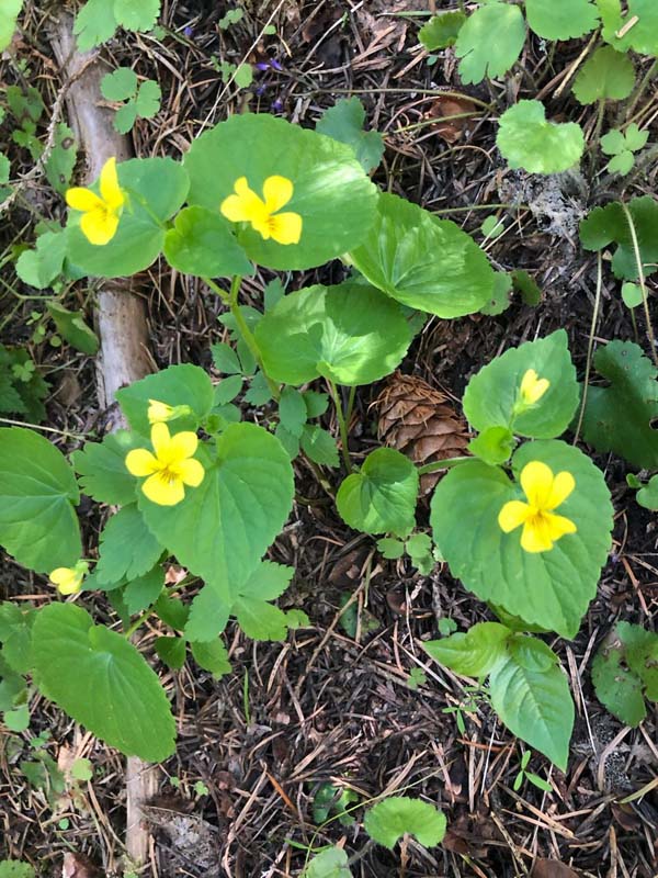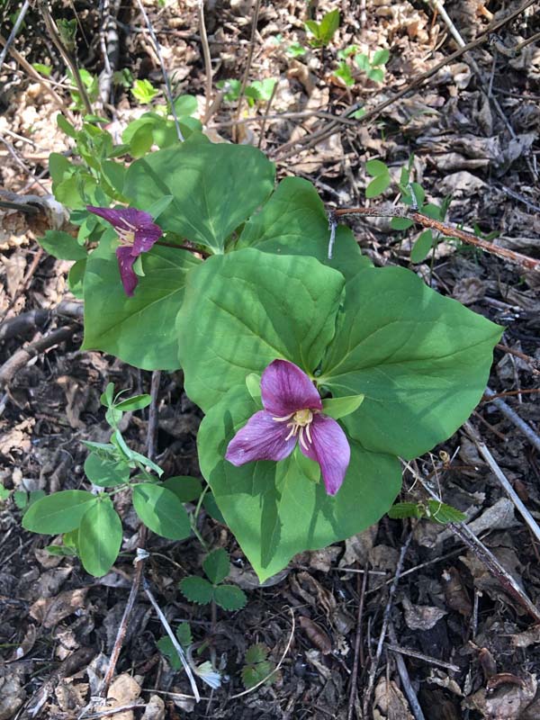 Well, we didn’t exactly walk very far — about 2.2 miles total RT, but boy, did we find flowers! (Someone will have to calculate the number of species per foot at some point.) Barry, Darryl, Sunny, Rich, Patricia and I had a wonderful time poking and crouching and exclaiming and arguing…. it was wonderful. Sunny would continually brave thick brush to capture the perfect Trillium shot). We more or less kept six feet apart.