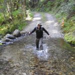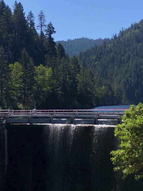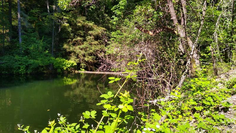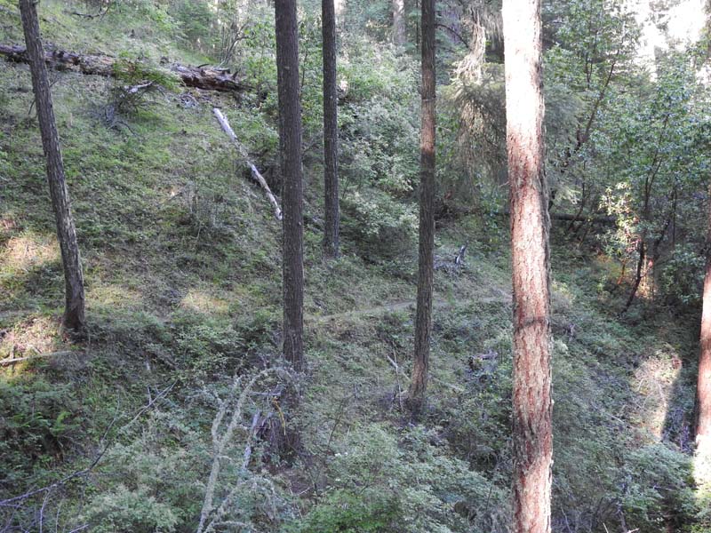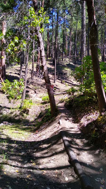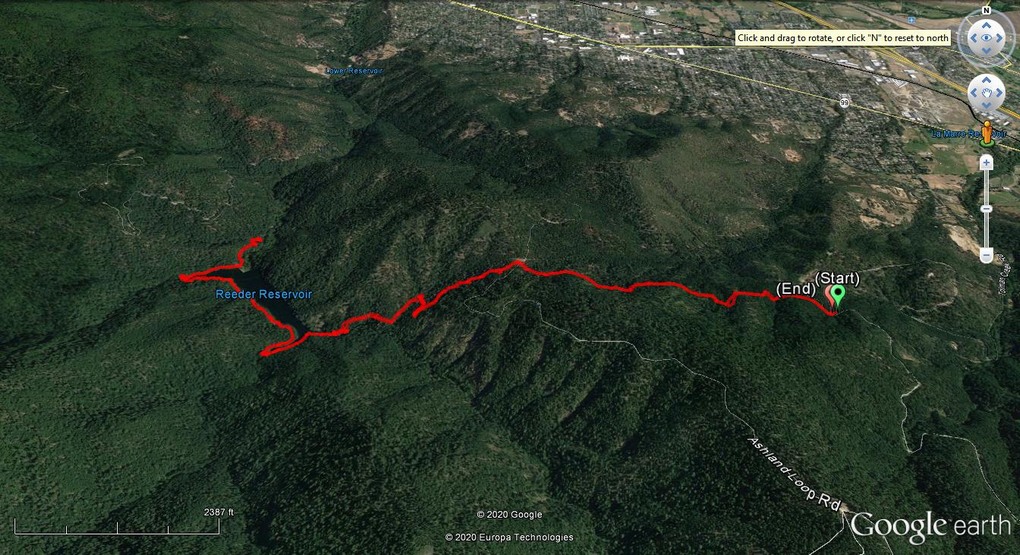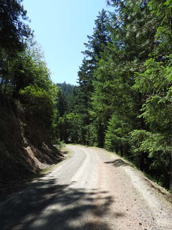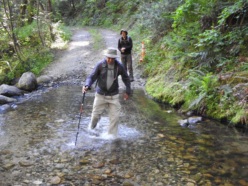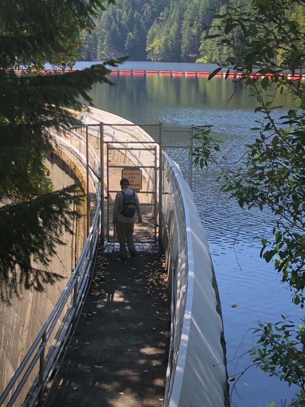 Suddenly the East Fork of Ashland Creek came roaring into the lake perhaps from an underground spring. We were full of wonder and awe as we took the old service road around a side of the reservoir. At one point we had to walk through about six inches of water from a tributary creek running over the road. Jerry surprised us when he decided to venture up a rough trail off the road that went up 400′ to FS2060 which he took three miles back to Lithia Park.