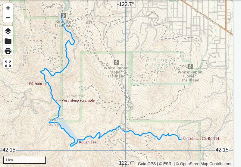 This new trail is suitable for AHG hikers, but best to keep groups down to six or fewer in this pristine area of natural beauty. And be sure to stay on the trail and out of the water (this is Ashland’s source for drinking water). And. of course, pack out what you pack in.