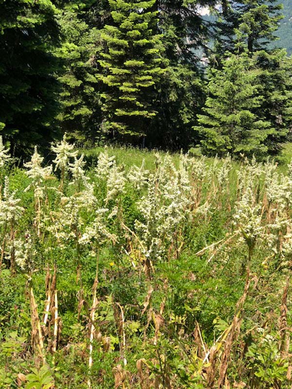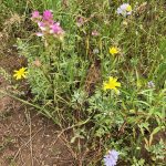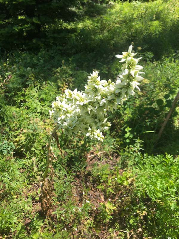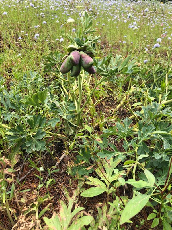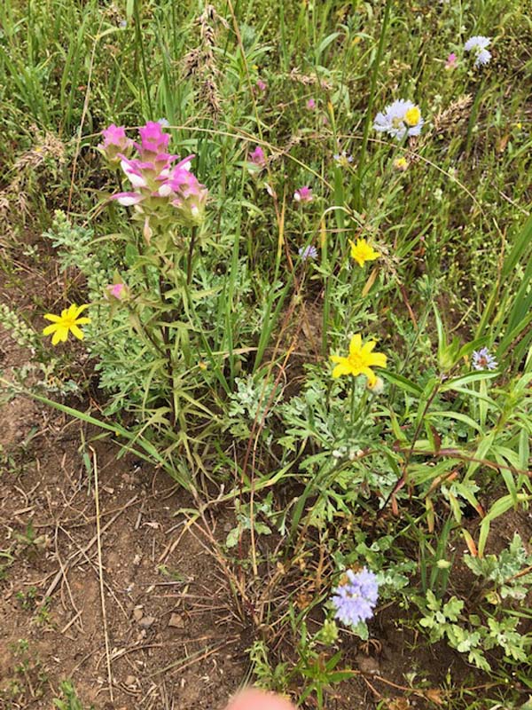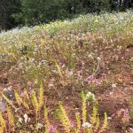 We headed east/north two miles to find “Peony Hill” on the final push to Little Pilot rock. The hilllside was completely transformed with colorful spreads of Rosy owls clover, Oregon sunshine and Blue-head gilia. Looking closely, we found the overburdened stems of Brown’s peonies weighted down with their heavy pea-like seed pods. We hiked about 3/4 mile further east to find scads of Corn lilies in bloom on the slopes looking down into the Rogue Valley.