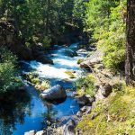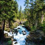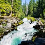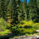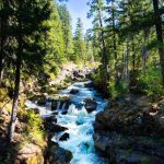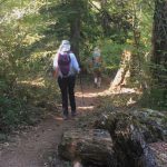 With fingers crossed, we decided to lead our caravan of three cars up Highway 62. Most of the smoke cleared as we drove out of the Rogue Valley. We drove to the Rogue River Gorge viewpoint just past Becky’s to start today’s hike. After walking the paved path to the four views of the Gorge, we turned our attention to finding a trail that would lead us down the Rogue to Union Creek.