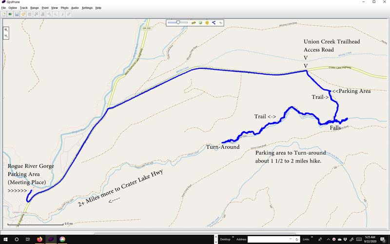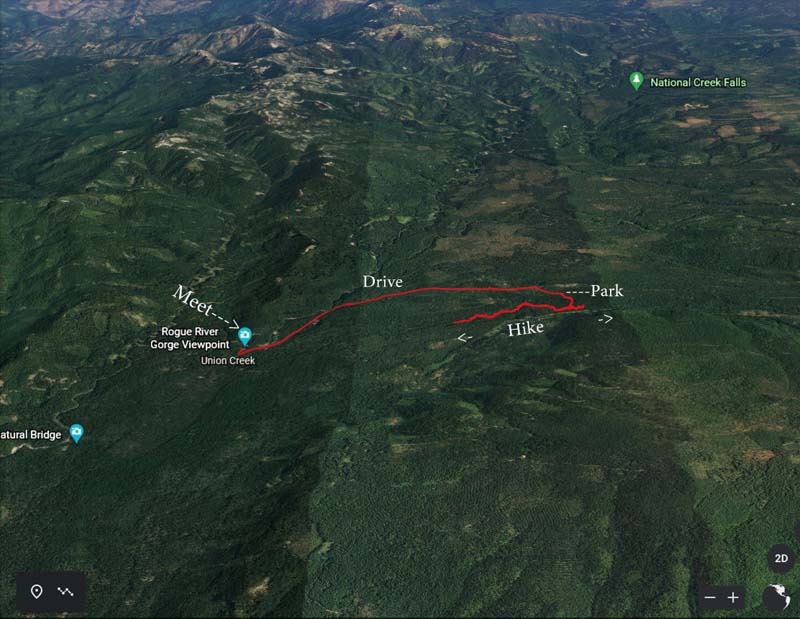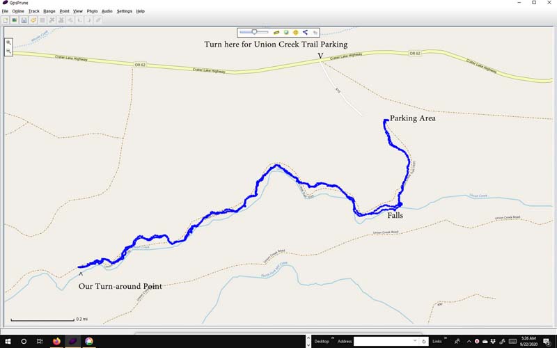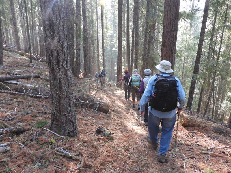 After last week’s postponement due to thick smoke everywhere and road closures, we were able to discover a new hike with blue skies and clean air. Advanced scouting was done at home and online. I learned Highway 62 was now open all the way past Becky’s and that the air quality index for the Union Creek area was a low 31.