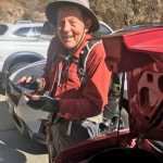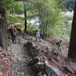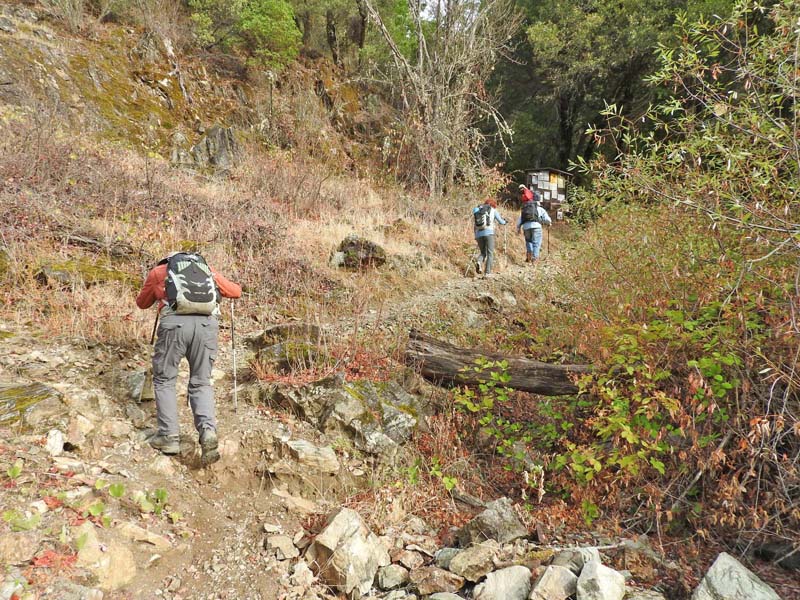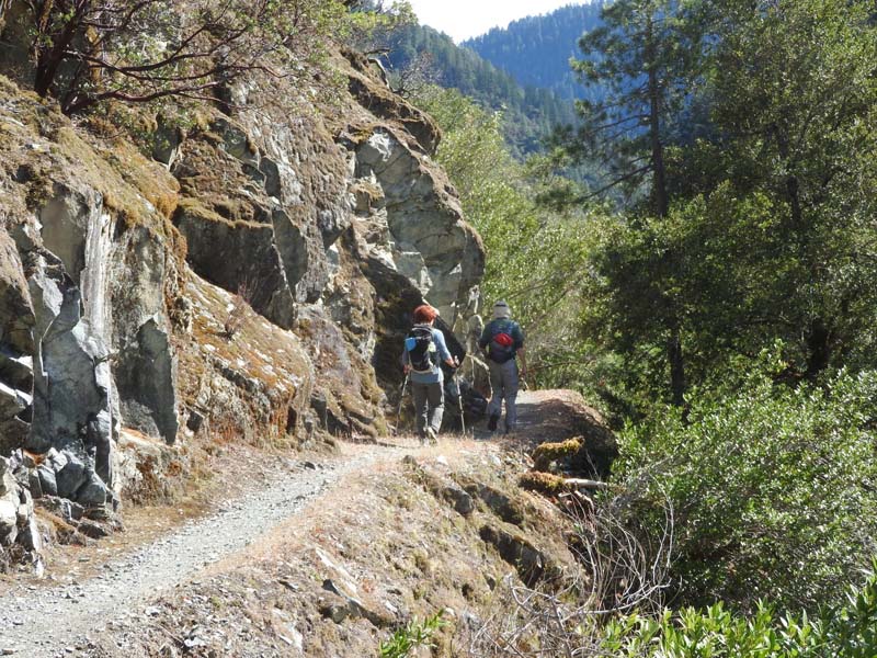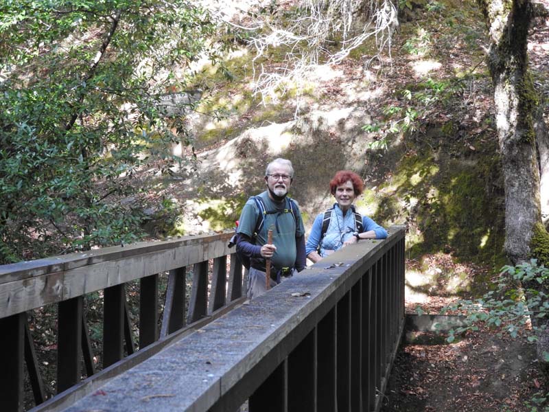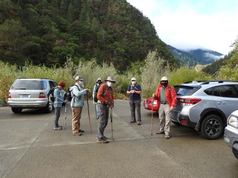 Mother Nature smiled on our little hiking group again, as a rainy trip up I-5 yielded to partly cloudy skies and 60o at the start of the hike. Seven went up the rocky path along the canyon wall and Sunny dazzled us with her new hiking attire.