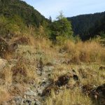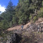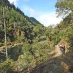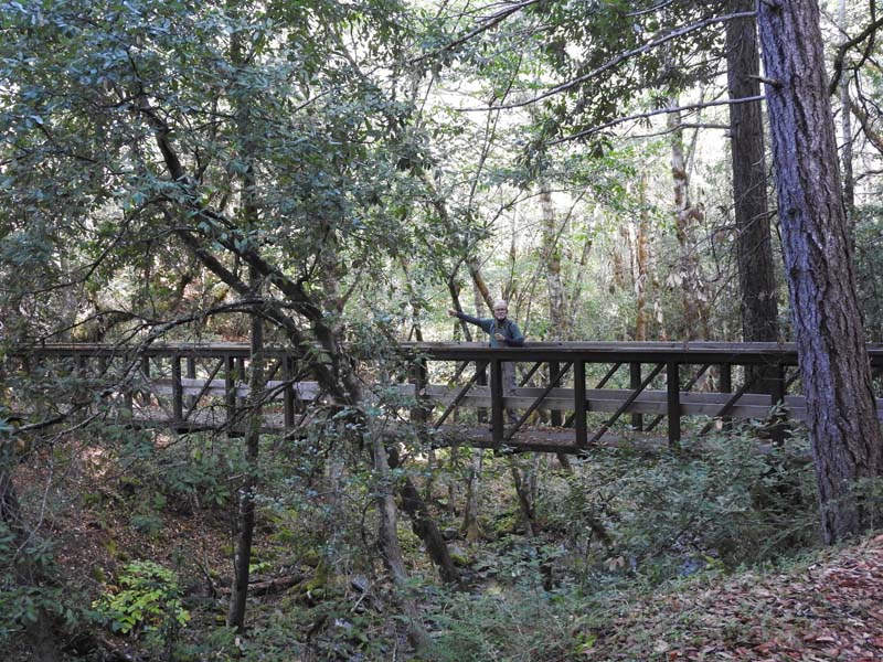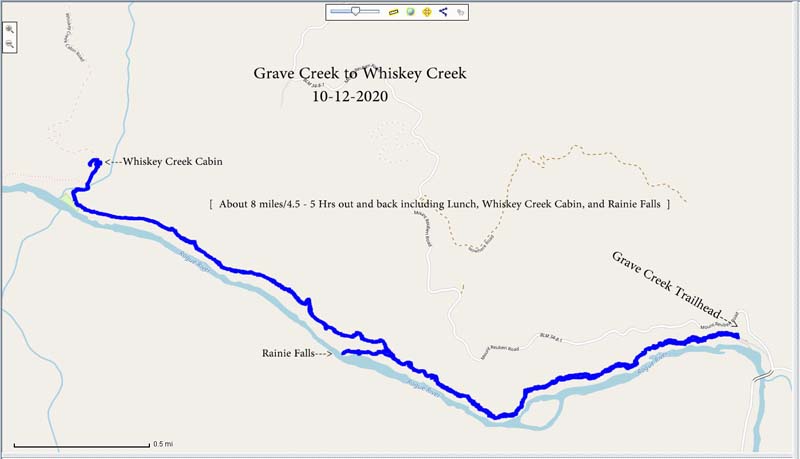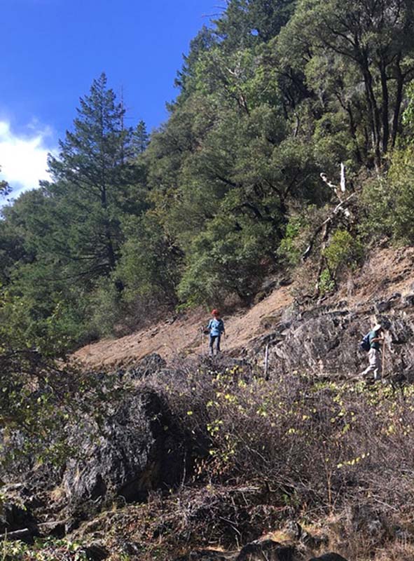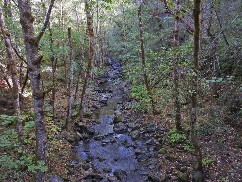 The cloudy morning gave way to blue skies with temps approaching 70o. The weekend rain had finally knocked down the smoke and put the west coast in the green zone for clean air. There was evidence of early morning rain or dew on the leaves and trail.