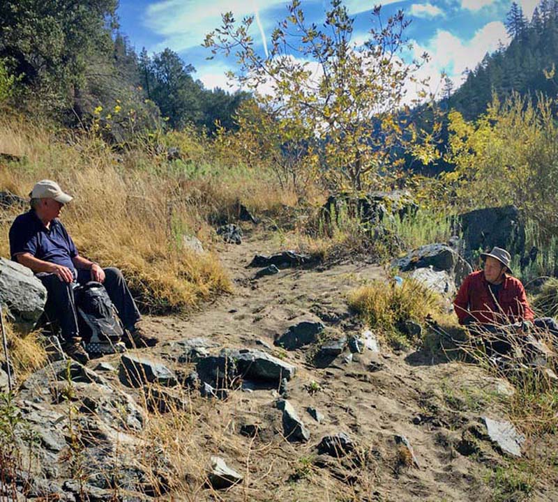 I took Jerry and Sunny up to see the historic Whiskey Creek Cabin of gold panner Lou Martin, while John took the boys down by the river for a sunny lunch break.