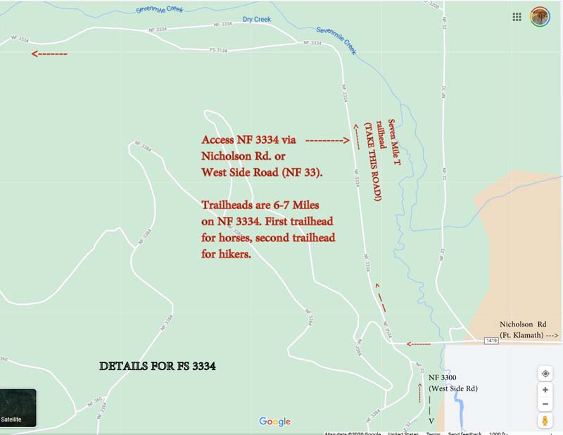 Dan’s comments on confusing road numbering were born out, but coming from Nicholson Road there were good signs directing us to 3334 and the TH. This would be how locals from Klamath Falls access the TH through Fort Klamath.